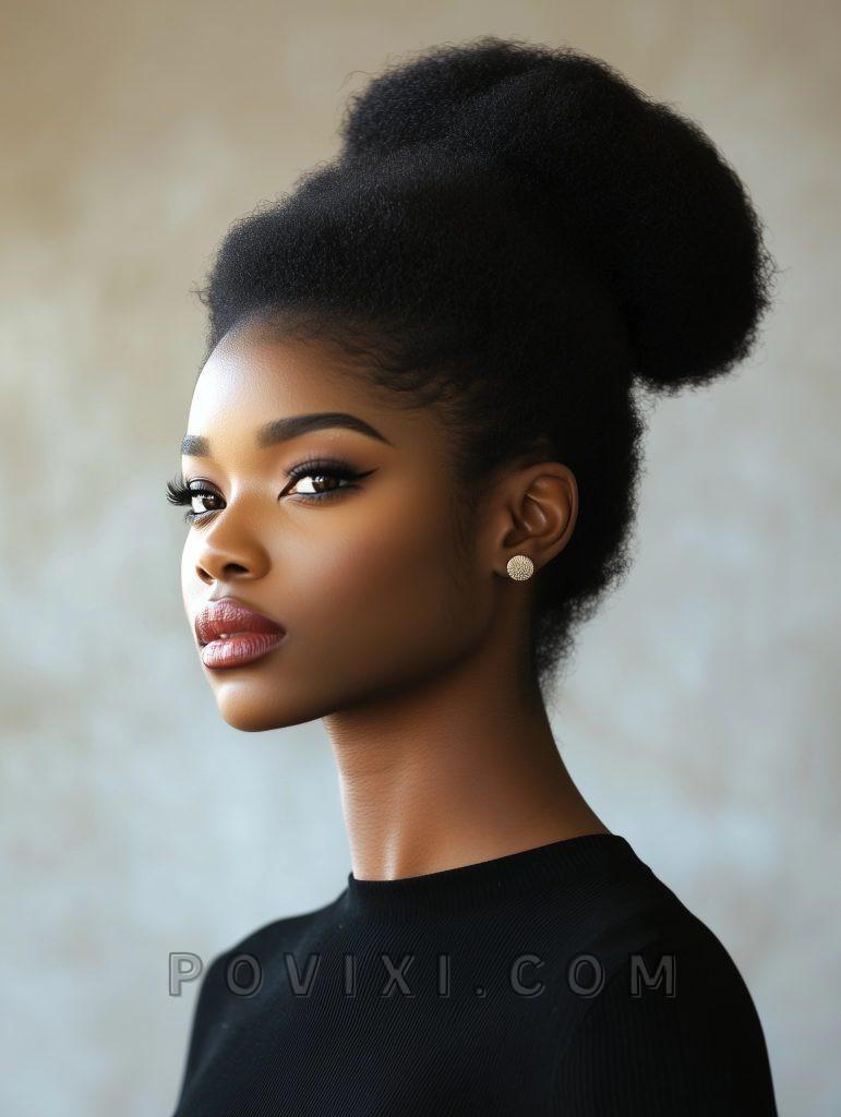 A 4c short puff with no gel is a carefree and easy style that showcases the natural beauty of 4c hair without the need for heavy products. This style is perfect for those who prefer a more natural look, free from gels and pomades. It’s ideal for casual outings or a quick for school style that’s both cute and practical. The puff works well with all face shapes and is especially flattering for those with strong facial features.