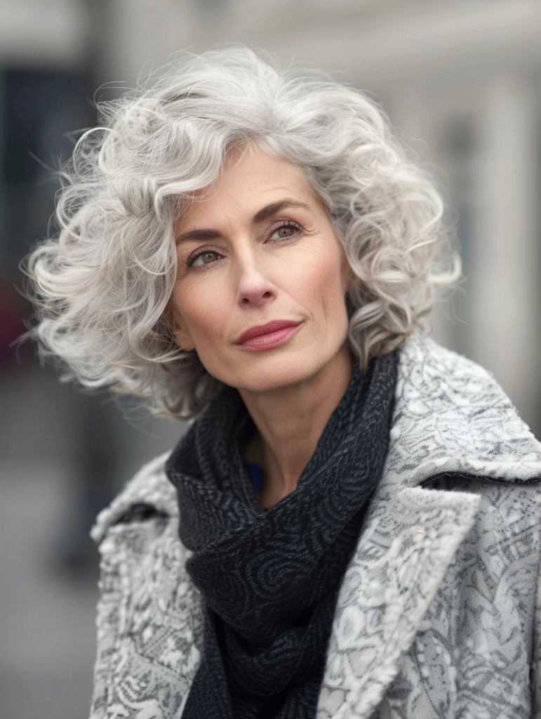 Regular trims and a nourishing conditioner, like Pantene’s AgeDefy, ensure the hair remains healthy and stylish. This cut not only respects the texture of aging hair but also celebrates it with grace.