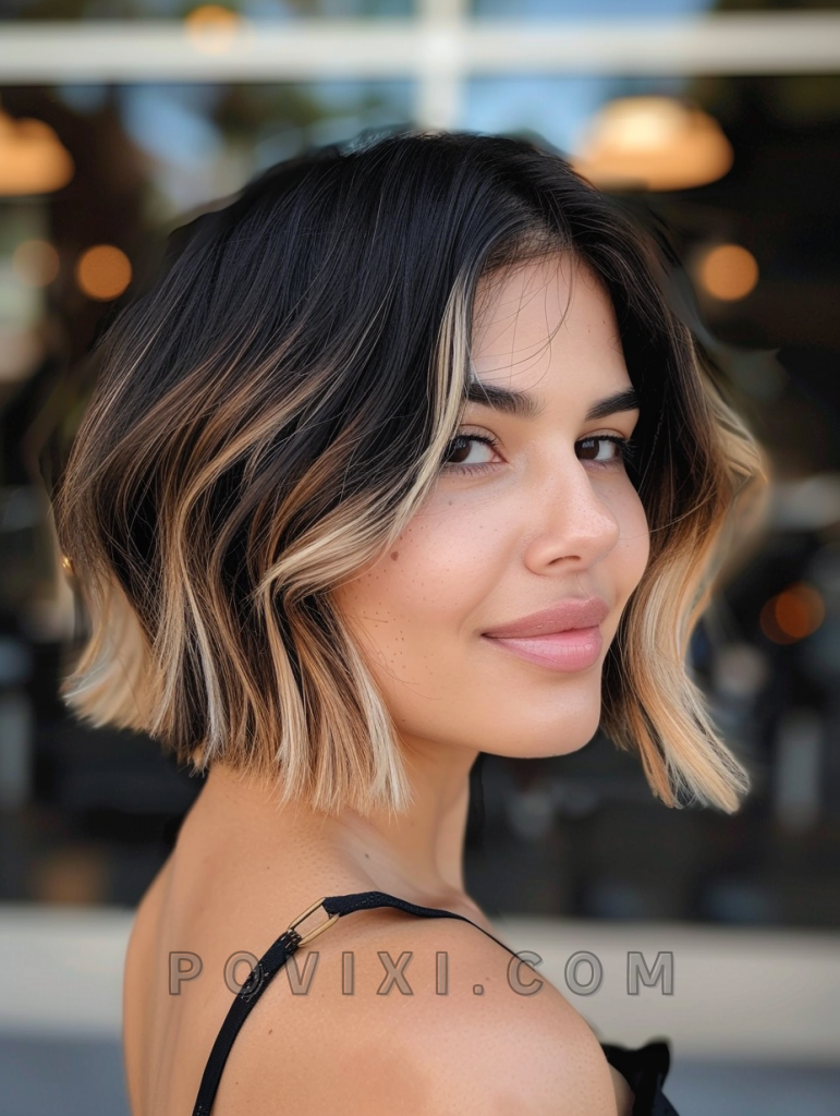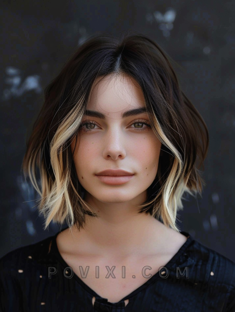 The short bob with face-framing highlights is a chic choice that illuminates the face and enhances your features. Ideal for medium to short hair, this style adds depth and dimension, making it perfect for social events or professional settings. It suits oval and heart-shaped faces best, highlighting cheekbones and balancing facial proportions.