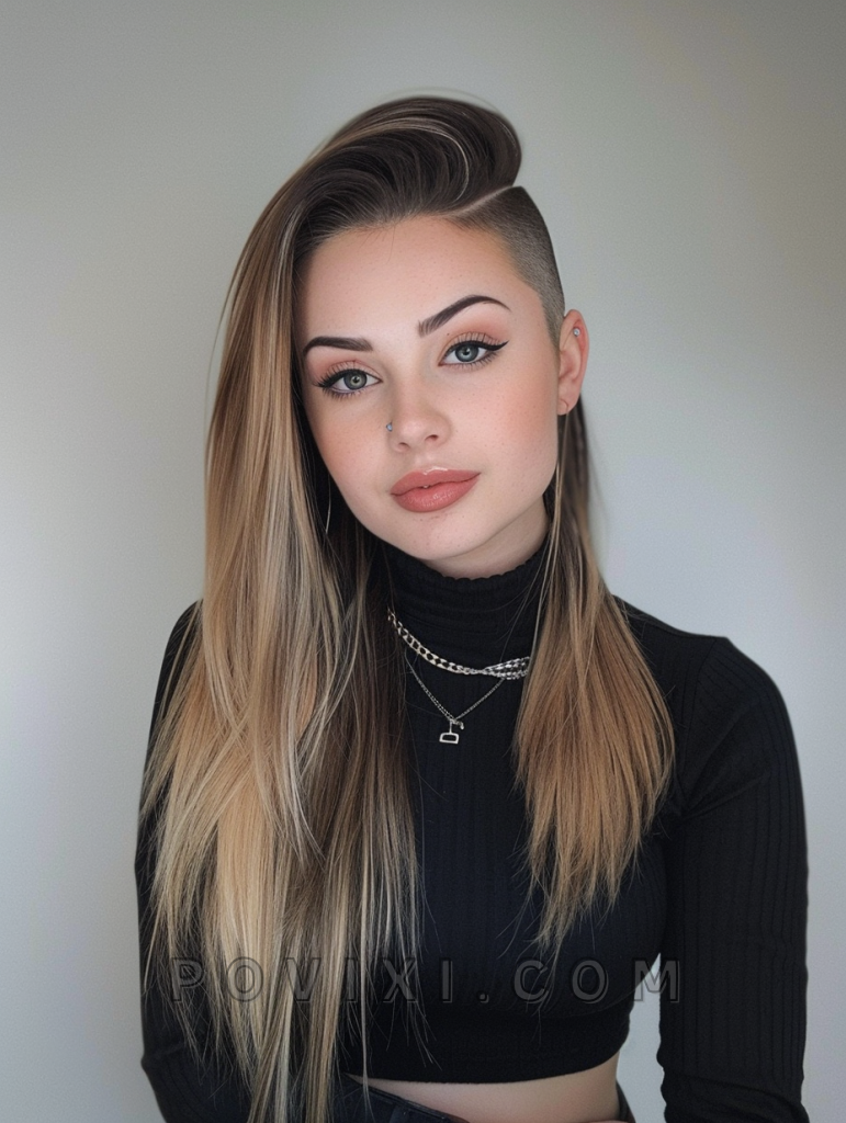 An undercut with hidden highlights is a bold and unexpected way to incorporate blonde into dark hair. This style is best suited for adventurous personalities and can be tailored to fit any face shape, depending on how the hair is styled on top.