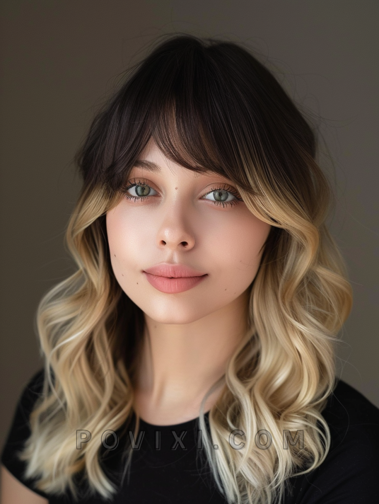Bangs with blonde tips offer a fresh, youthful look that can instantly update your style. This hairstyle works best with medium length hair and suits all face shapes by framing the eyes and forehead.