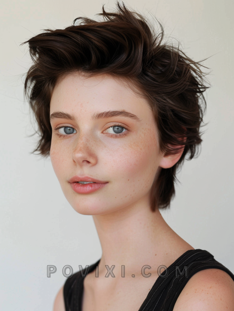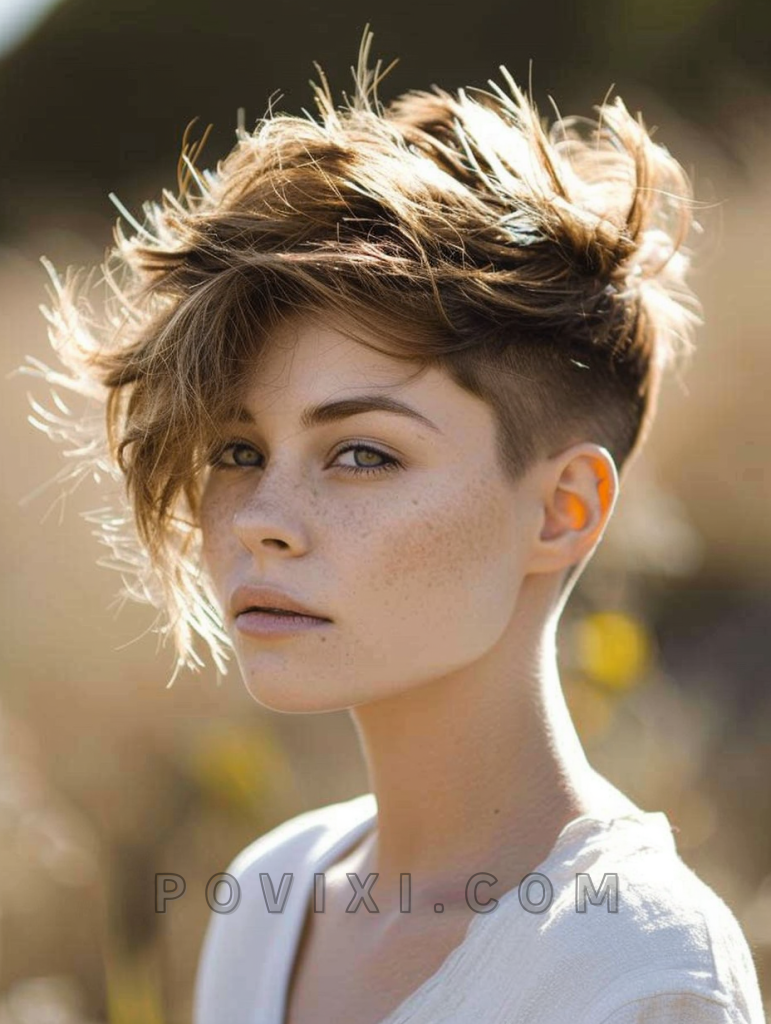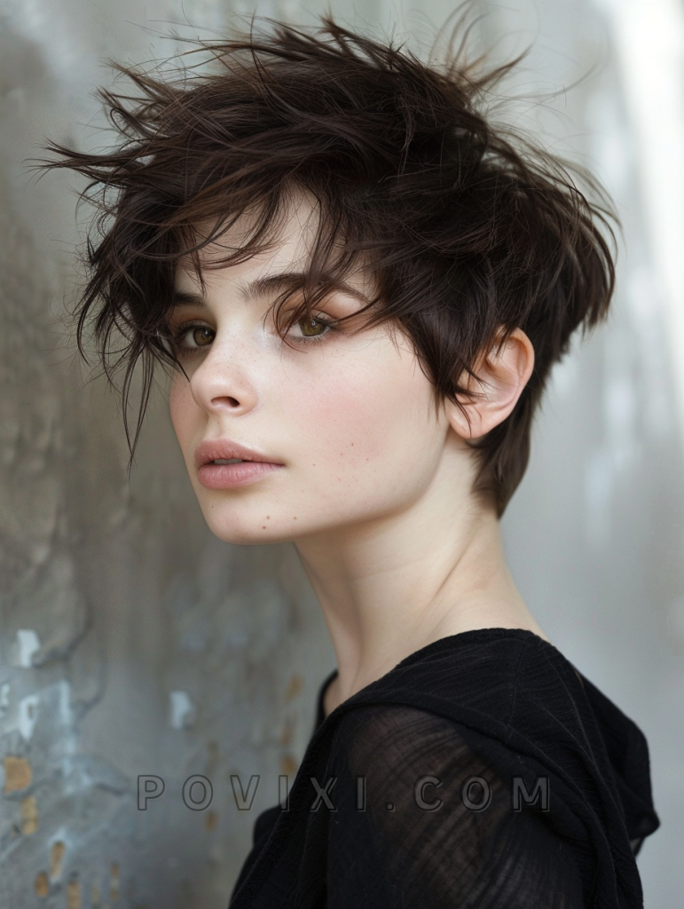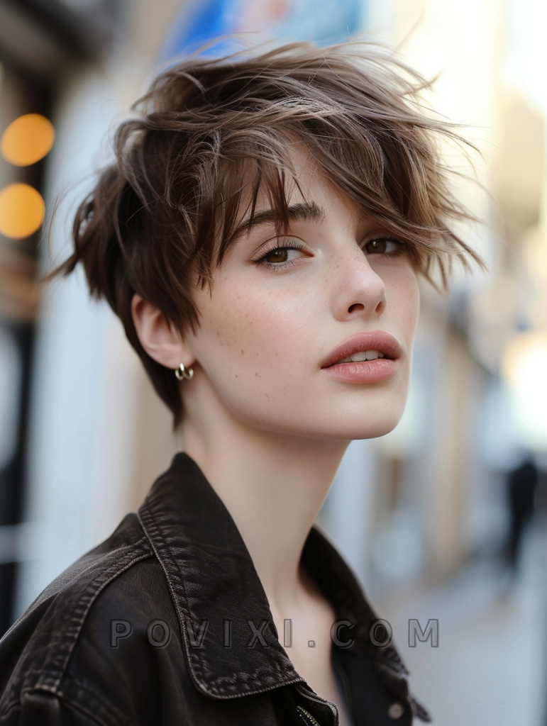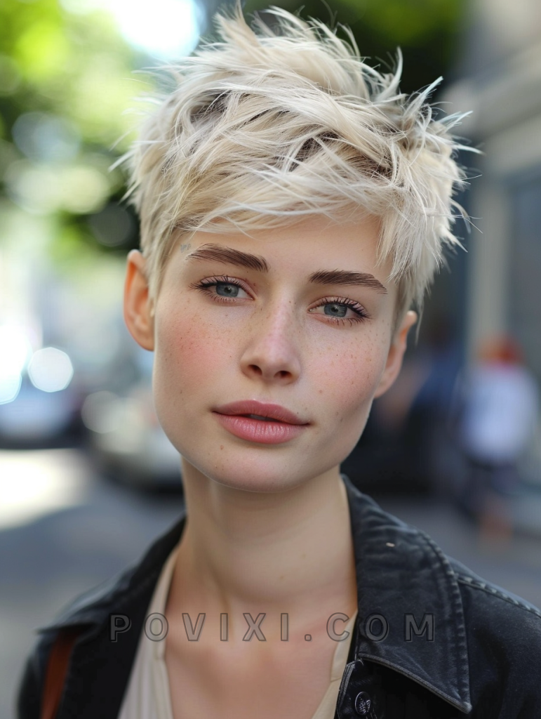 A textured pixie cut is an excellent choice for women with fine hair looking for a hairstyle that adds volume and movement. This style is particularly flattering for those with oval or heart-shaped faces and works well with light eye colors, enhancing a soft and delicate appearance. Ideal for casual outings or more formal events, the textured pixie is as versatile as it is stylish.