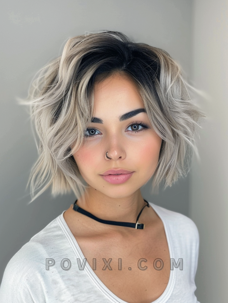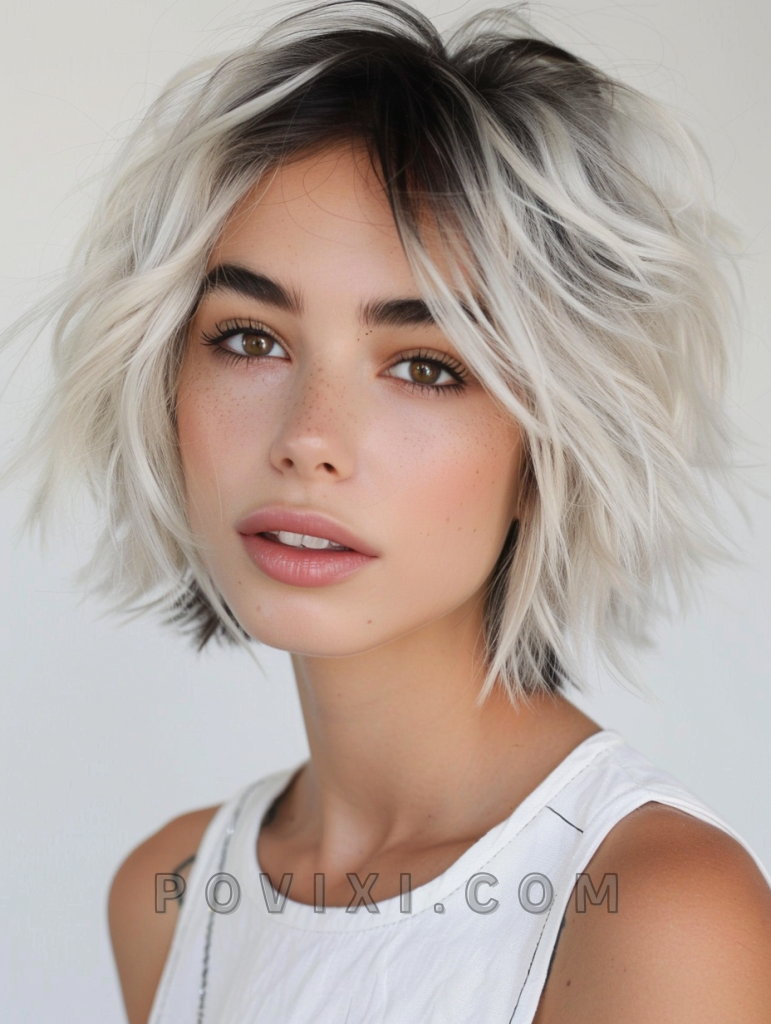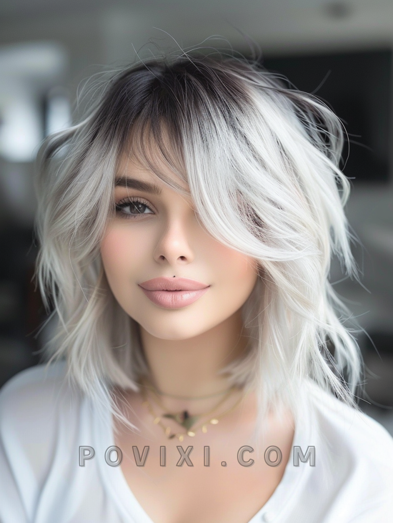 Combining the daring contrast of platinum blonde with dark roots, this hairstyle screams boldness and modernity. It’s an excellent choice for women wanting to make a statement.