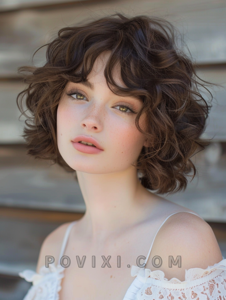 For maintenance, light curl creams or mousses can enhance the natural wave without overwhelming the delicate bangs. This hairstyle is great for casual outings and creative environments.