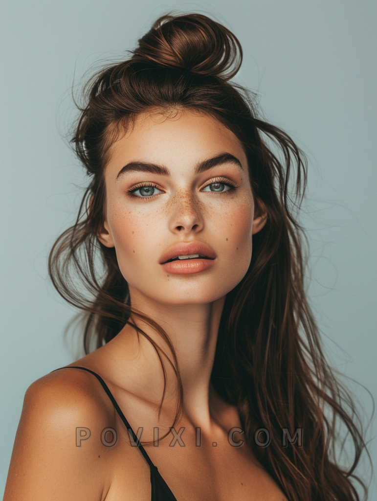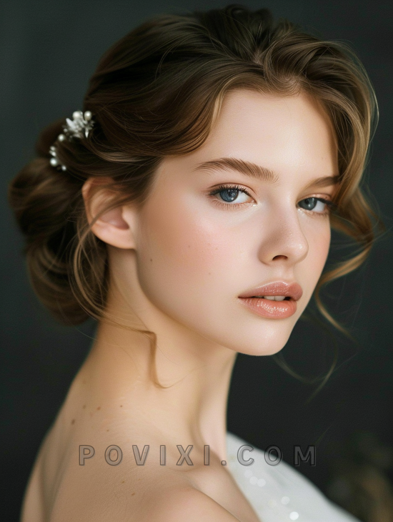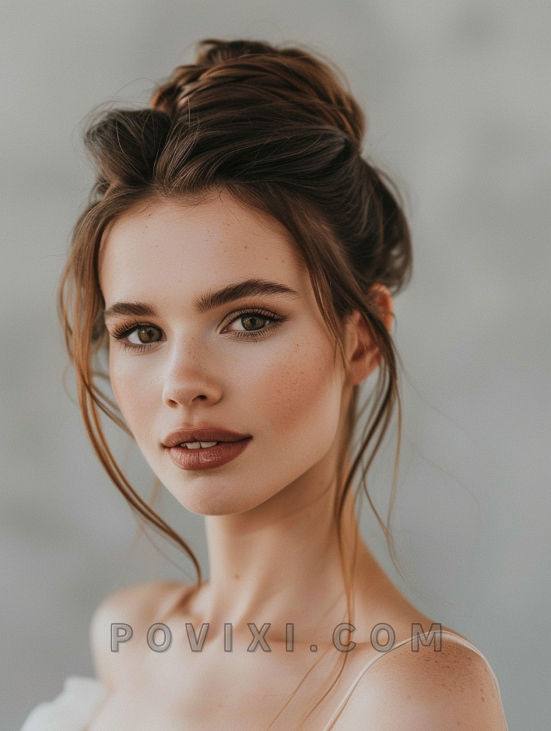 Create this look by loosely gathering your hair into a soft bun at the back of your head. Pull out a few strands to frame your face and give a more relaxed, romantic feel. Use a texturizing spray to enhance the volume and texture.