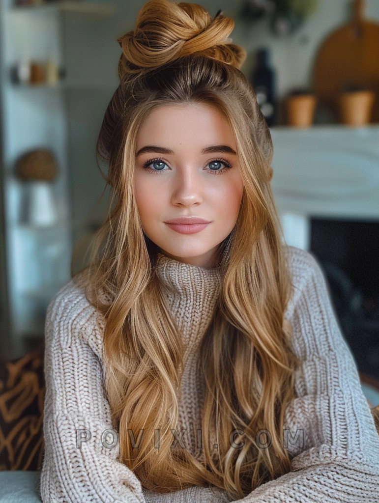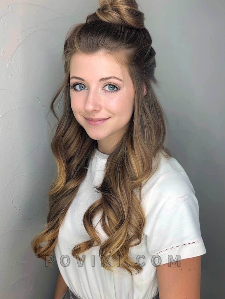 The half up, half down hair style is versatile and works for almost any party, from graduations to engagements. It looks stunning on any hair length and is particularly flattering for oval and heart-shaped faces.