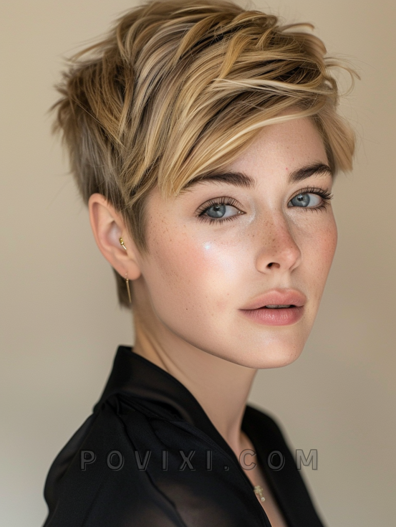 This short hair style is bold and easy to manage, perfect for more casual birthday parties or farewell gatherings. It suits all face shapes, especially with added texture for round faces.