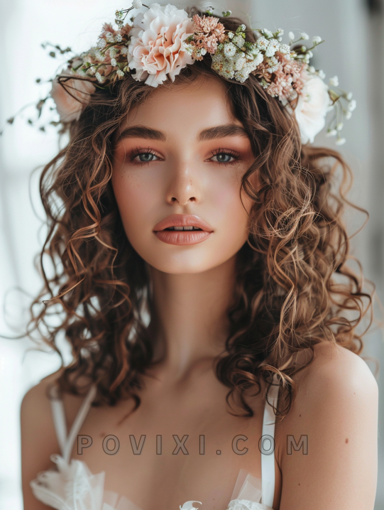 Enhance your natural curls with a curl-defining cream. Add a handmade flower crown for that extra special touch, perfect for a wedding or graduation.