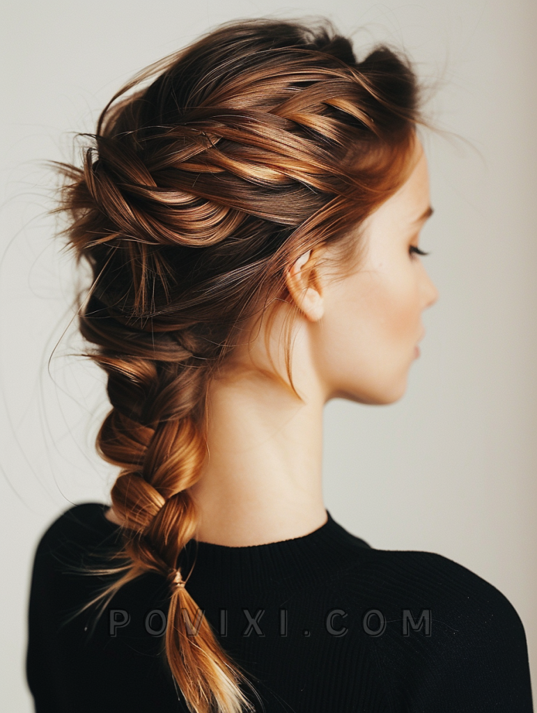 Chic and sophisticated, the fishbone braid is a perfect choice for cocktail parties or a stylish farewell. This hairstyle works best on long hair and complements all face shapes, offering a sleek, elegant appearance.