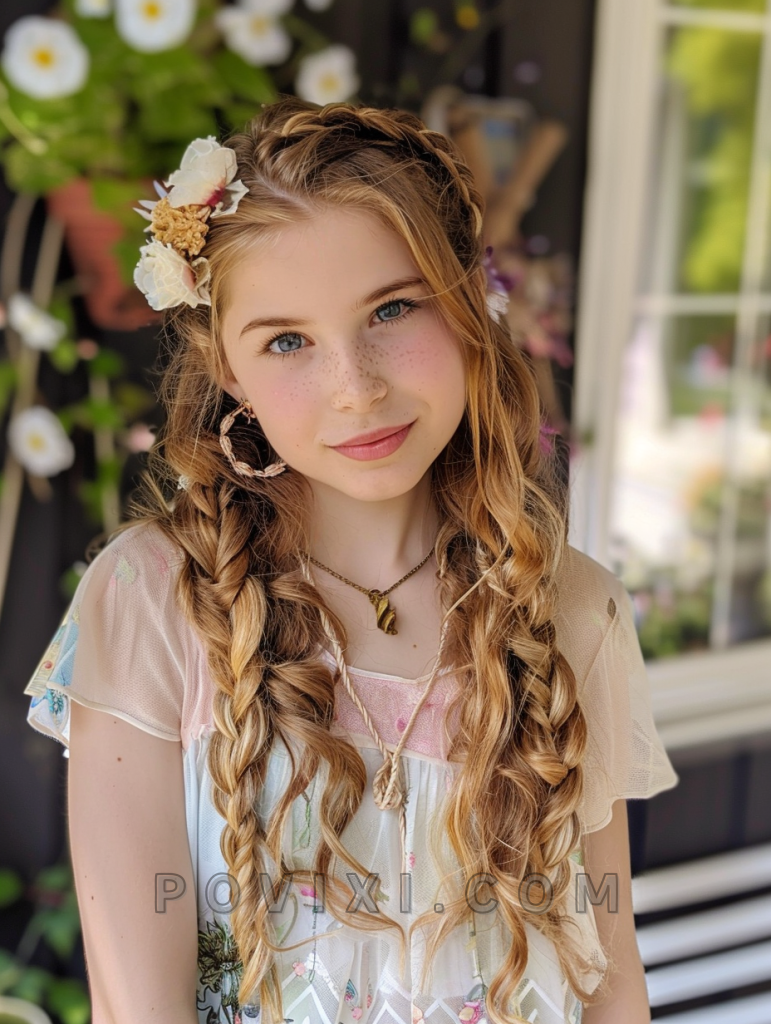 The waterfall braid is enchanting and suitable for semi-formal to formal events, including graduations and weddings. It looks best on medium to long hair and suits all face types, especially with cascading layers.
