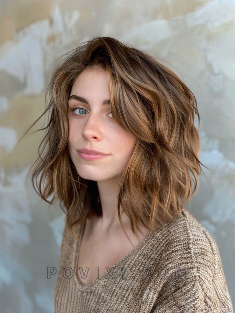 Soft waves bring a gentle, feminine charm to shoulder length hair, creating a versatile look that’s easy to manage. This style suits almost every face shape and is particularly flattering for women with softer facial features. It’s an excellent choice for both professional settings and casual days out.