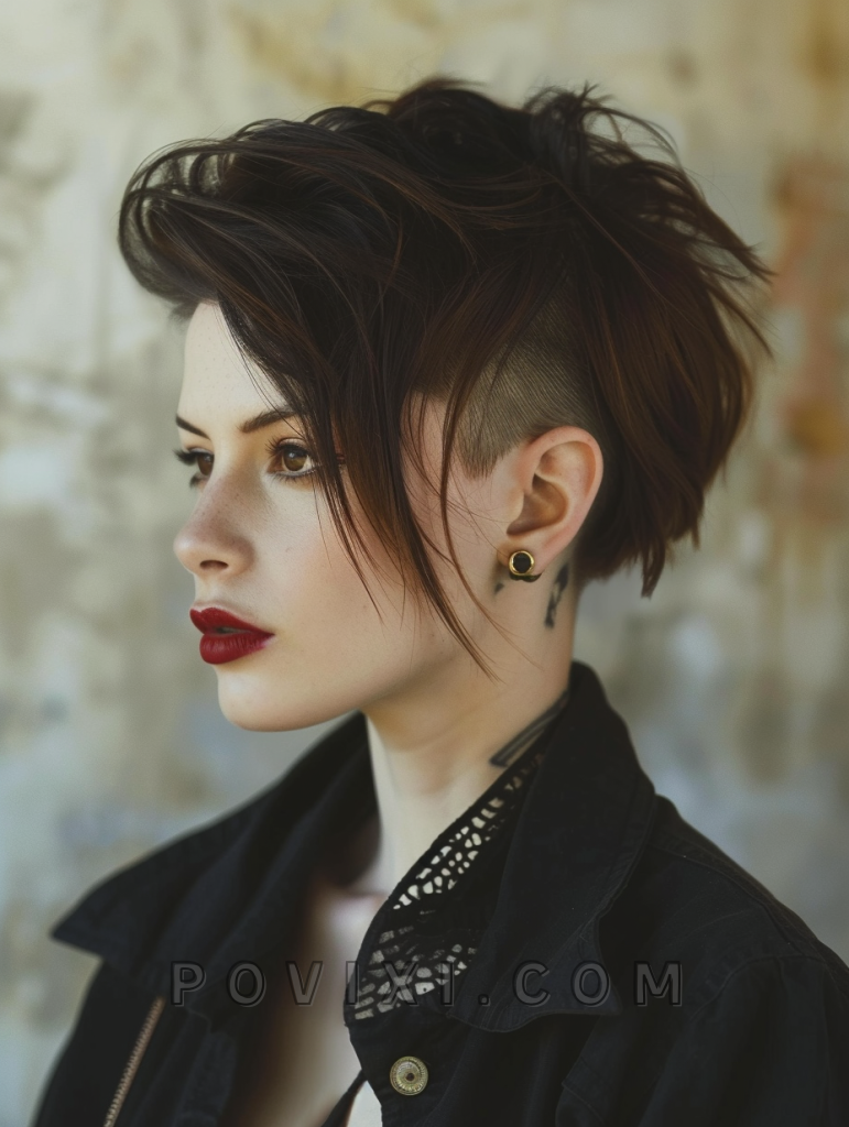 The undercut bob is a daring style that combines the classic bob with a hidden undercut beneath. This style works exceptionally well for women with thick hair looking to reduce bulk and add an edge to their look. It’s particularly striking on oval and square face shapes.