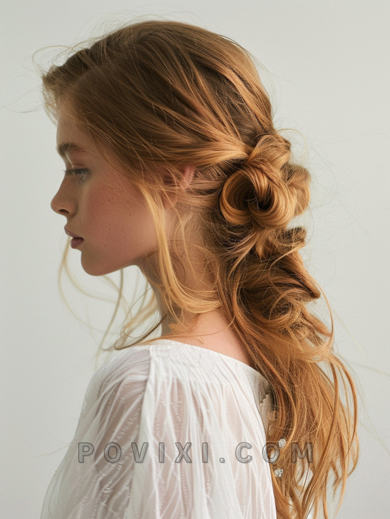 A French twist is a timeless hairstyle that exudes sophistication and elegance. This style is perfect for formal events and suits long hair or medium length hair. It’s flattering on most face shapes and adds a polished touch to any outfit.