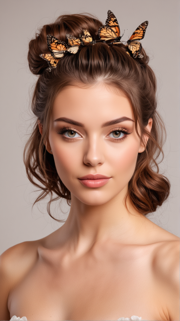 The Romantic Butterfly Updo is enchanting and sophisticated, making it ideal for weddings or special occasions. This hairstyle is best for those with short wavy hair and adds a touch of romance with its intricate twists and turns.