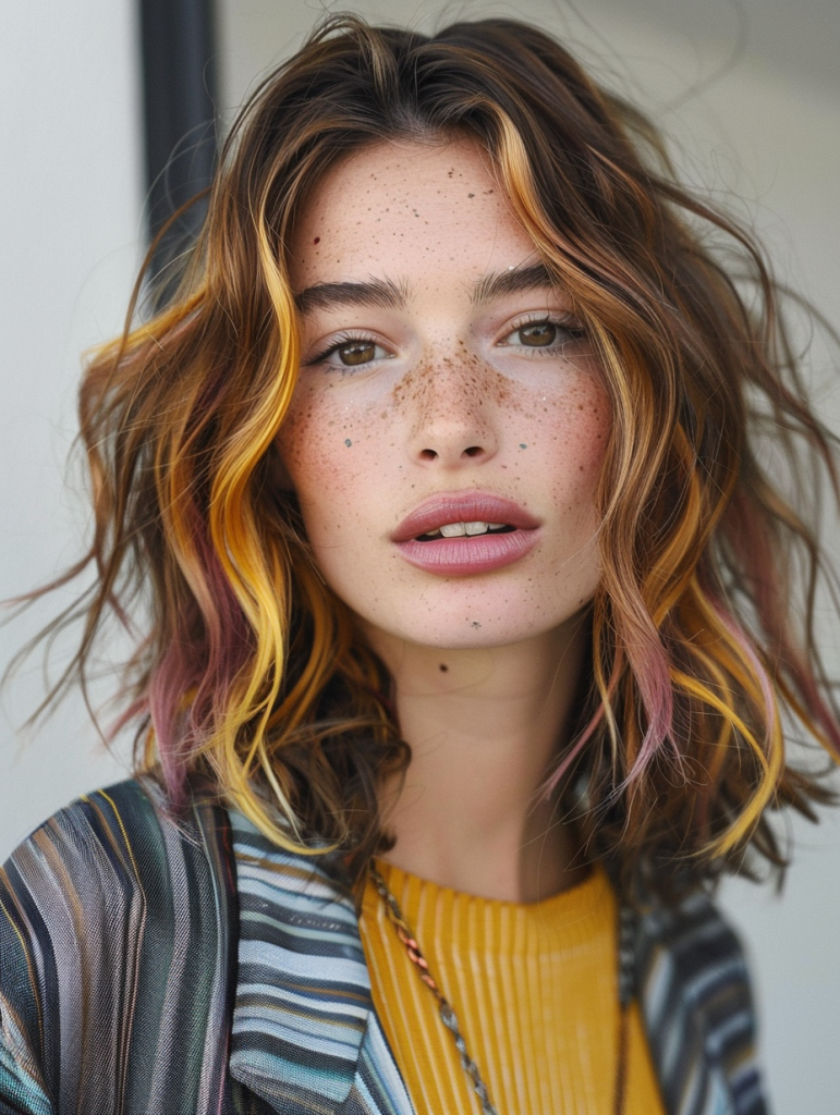 Creating this hairstyle involves using a curling iron to add loose waves, then brushing them out for a softer appearance. A salt spray will enhance the beachy texture, while a UV-protection hair spray keeps the color vibrant and hair healthy under the sun.
