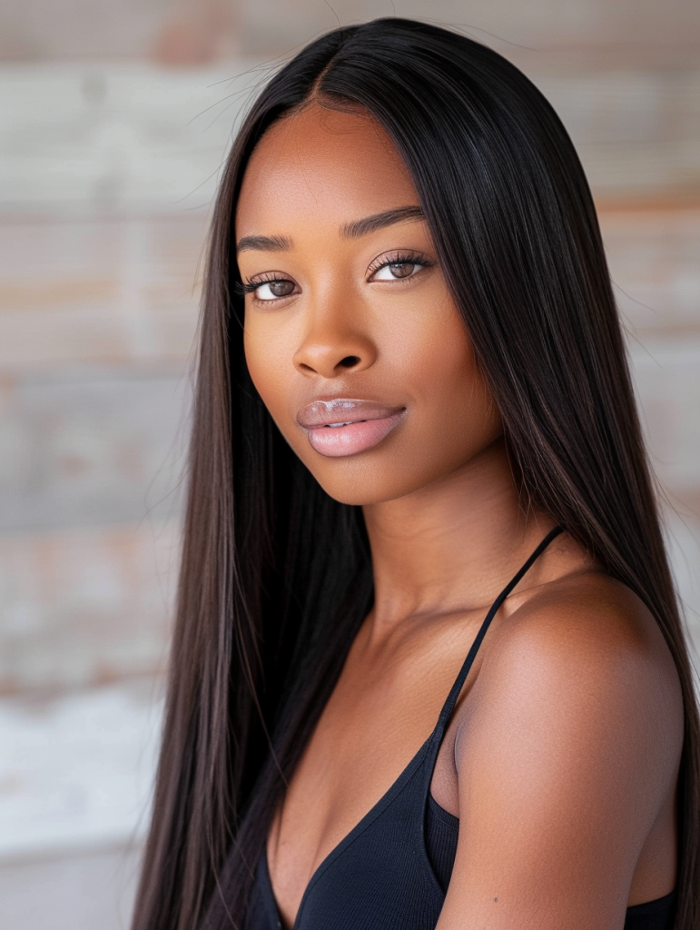 Achieving this look requires a good ceramic straightener and a heat protectant to prevent damage. Regular use of a smoothing shampoo and a silicone-based serum will keep the hair sleek and shiny.