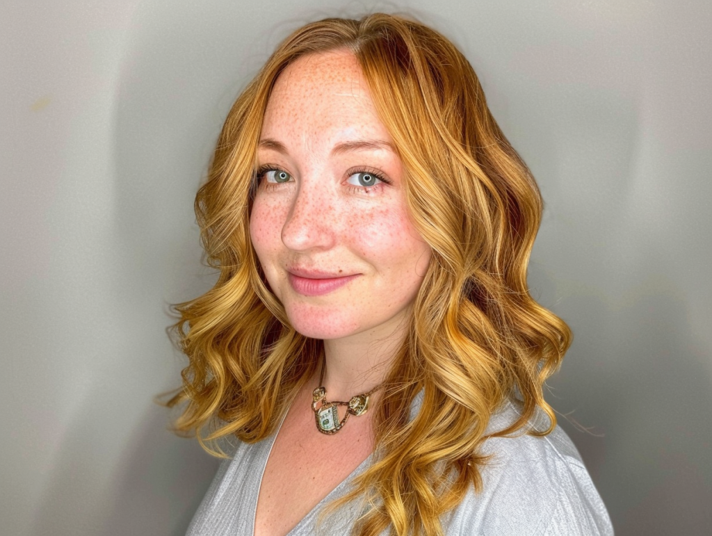 Soft Strawberry Blonde Waves with Hidden Highlights
