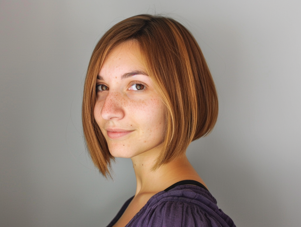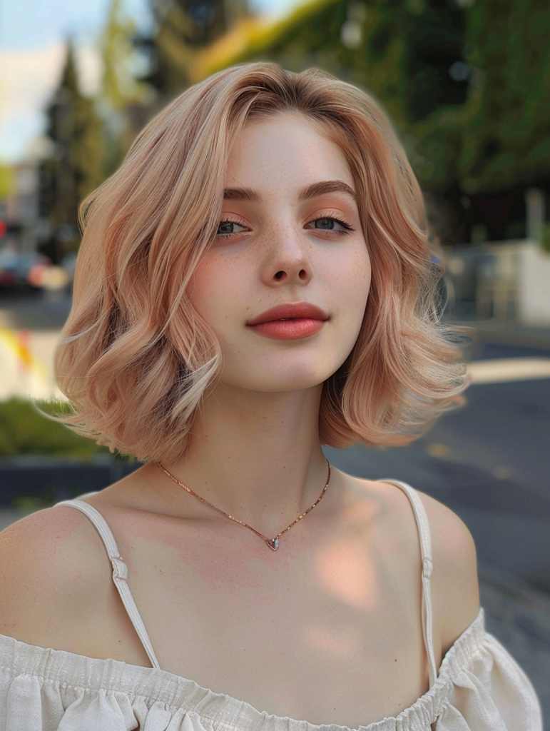 The dimensional bob is perfect for those who want a subtle yet impactful change. This style, ideal for light to medium skin tones, particularly shines with green or hazel eyes, enhancing their natural vibrancy. A strawberry blonde bob brings a fresh twist to the classic cut by incorporating blonde highlights and copper tones, making it versatile for both casual gatherings and professional settings. Its layered dimension allows it to gracefully frame the face, especially flattering for oval and heart-shaped faces.
