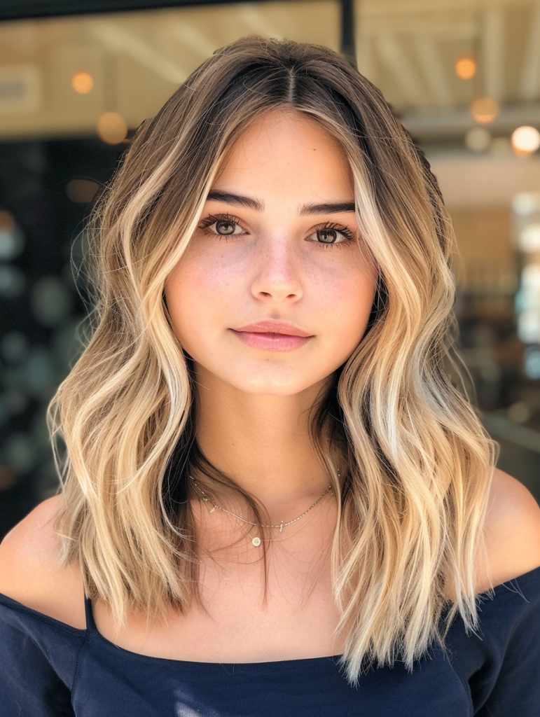 The playful light lob with dimensional highlights is a fun and flirty choice that adds personality and movement to your style. This look is particularly flattering for those with fair to medium complexions and light eye colors, as it enhances the natural brightness of the face. It’s a fantastic choice for social gatherings and creative workplaces, complementing round and pear-shaped faces by elongating their appearance.