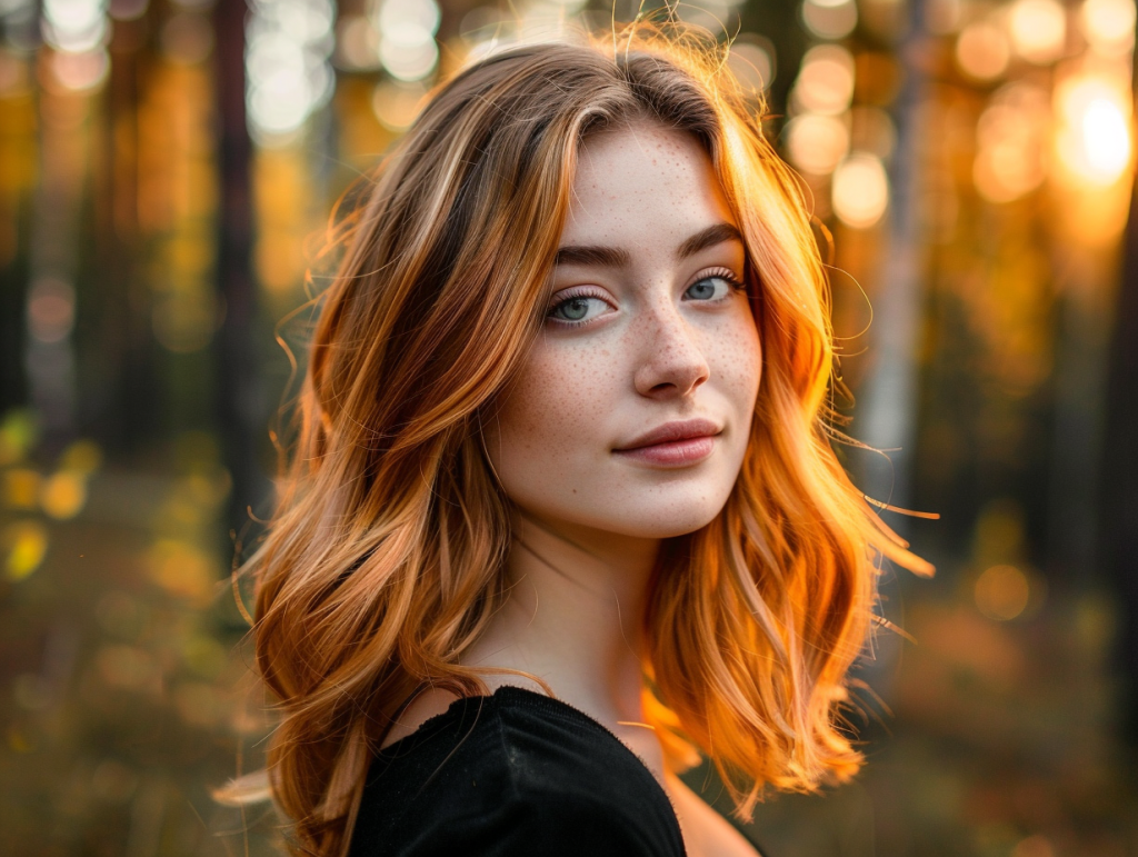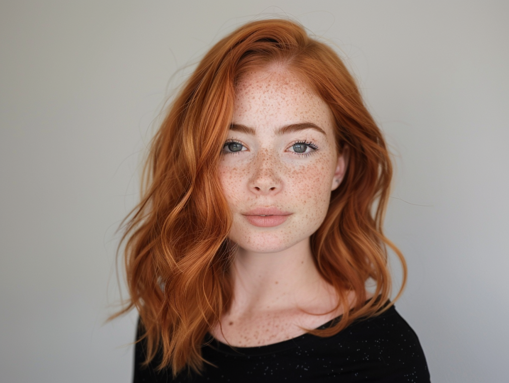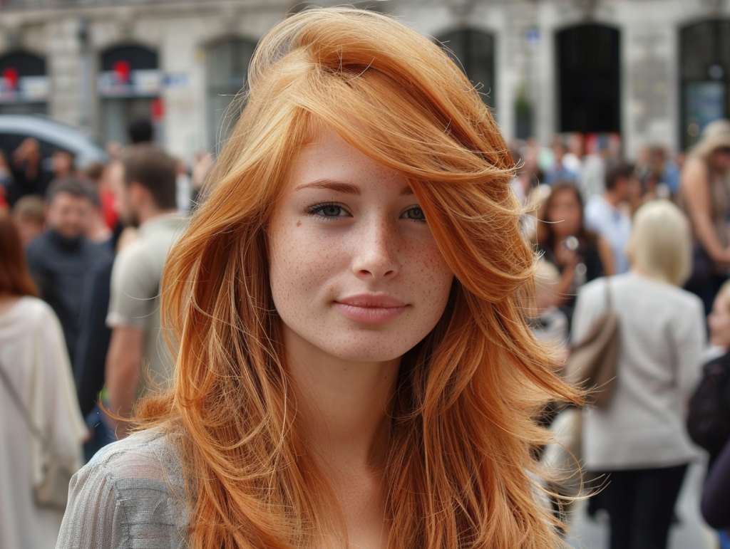 The radiant golden ginger style is ideal for adding a soft, natural glow to your look. Suitable for fair to neutral skin tones and especially beautiful on those with blue or green eyes, this hairstyle brings warmth and brightness to the face. It’s an excellent choice for both daytime activities and more formal evening events, and it flatters long and oval face shapes by softening their length.