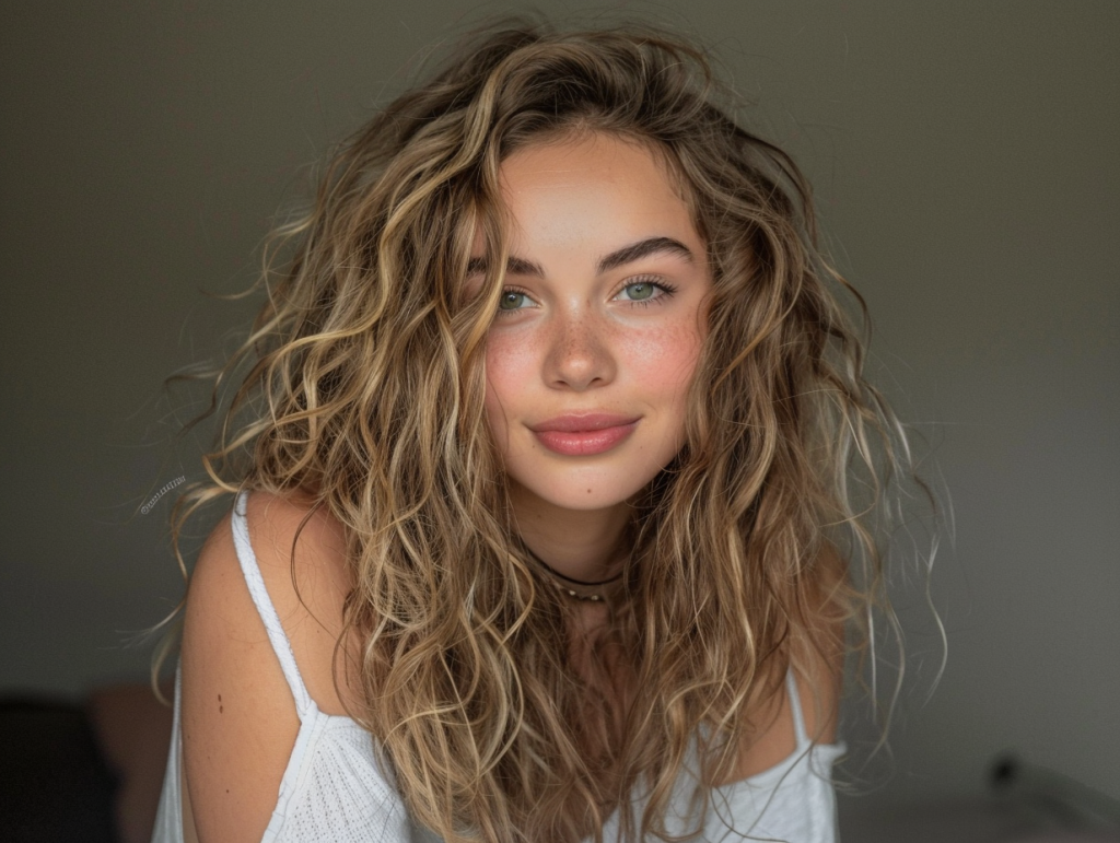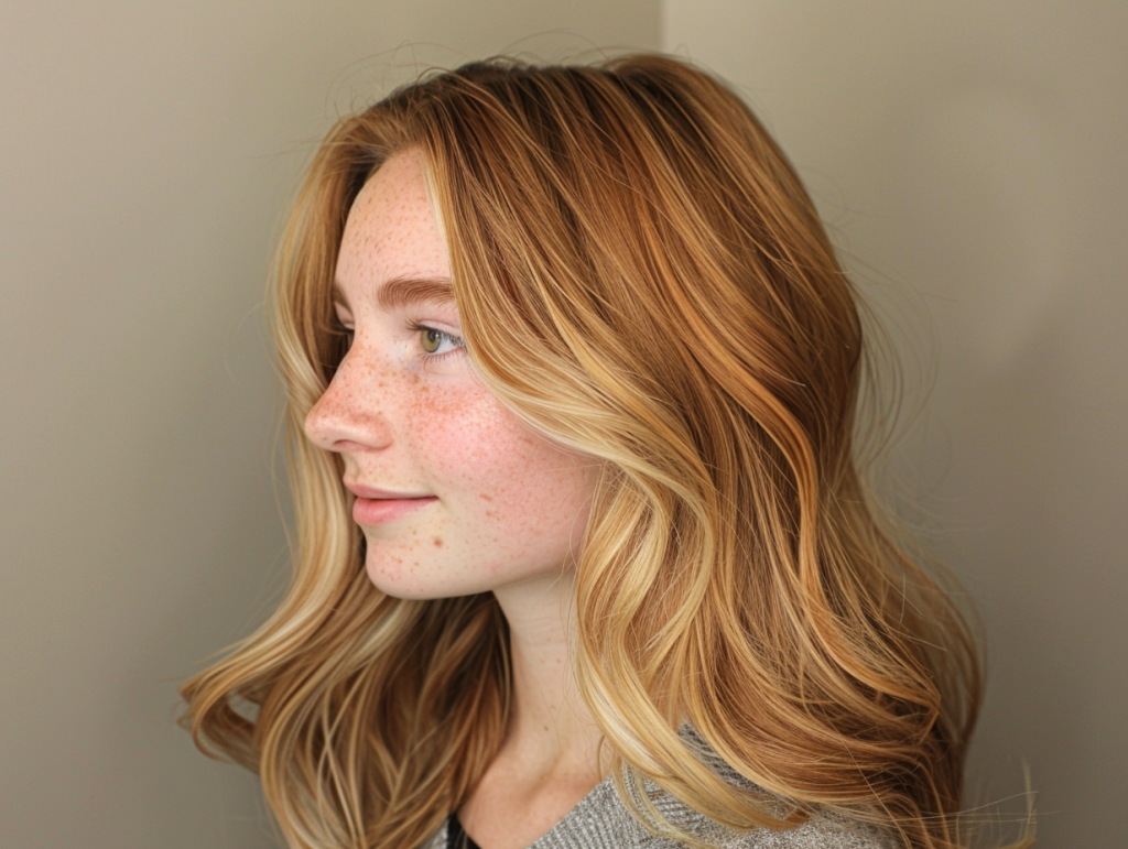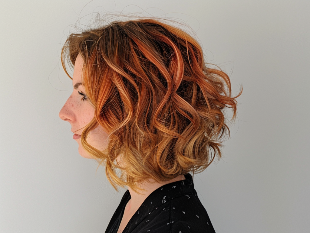 To achieve this style, incorporate light ginger hair tones with golden blonde highlights. The subtle waves can be created using a large barrel curling iron or by braiding your hair when damp and letting it dry. For maintenance, use a gentle, hydrating shampoo like the Ouidad Advanced Climate Control Defrizzing Shampoo to enhance the definition of the waves and keep your hair frizz-free.