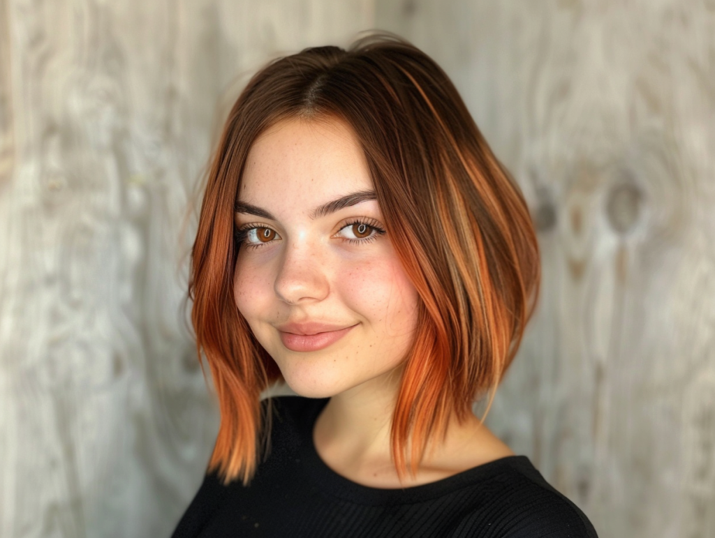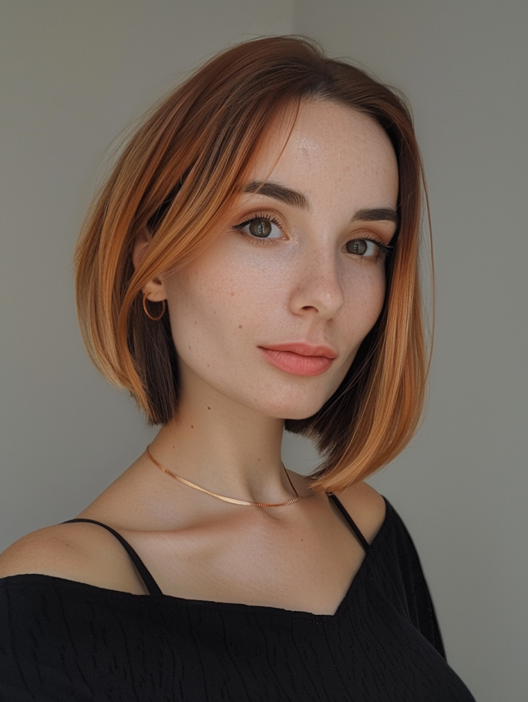 A sleek dark bob with copper highlights is a bold and striking choice that offers a touch of edgy sophistication. This style is best suited for those with olive to dark skin tones and dark eyes, as the copper adds a warm contrast that is both eye-catching and stylish. The sleek bob is versatile, making it suitable for both corporate settings and evening events, and it flatters angular face shapes like square and rectangular.