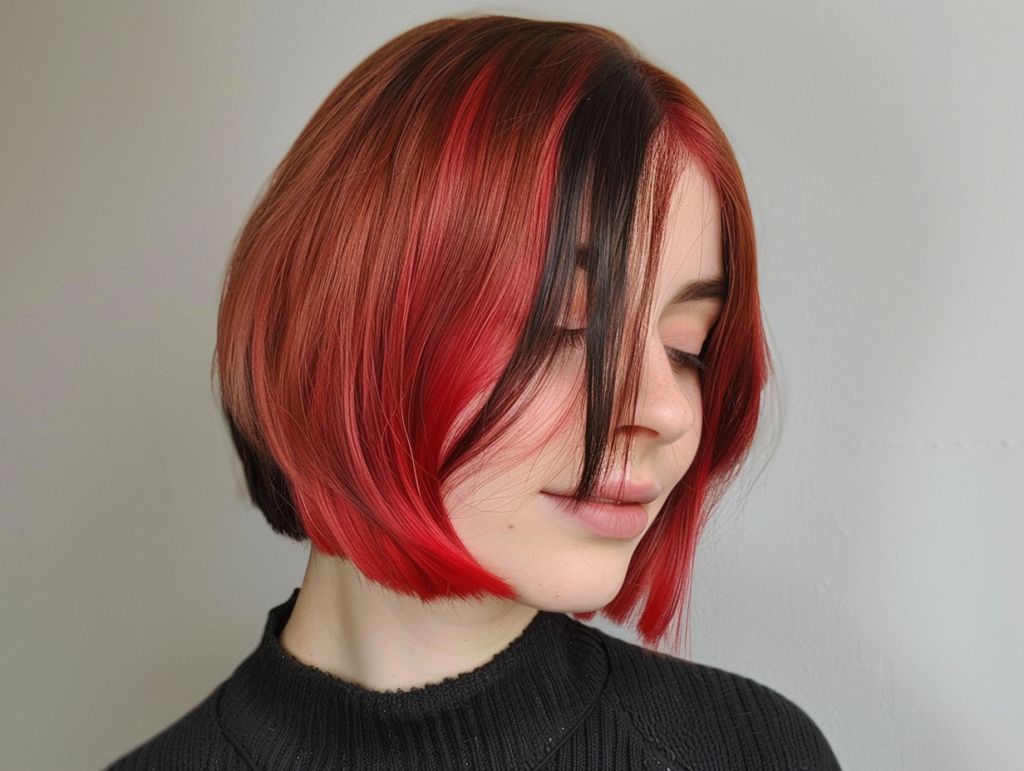 A vibrant strawberry bob with a darker shade underneath offers a contemporary and edgy aesthetic. This style is particularly striking for those with medium to dark complexions and any eye color, providing a bold contrast that makes a statement. It’s suitable for artistic events or a bold office look, complementing angular face shapes such as square or triangular.