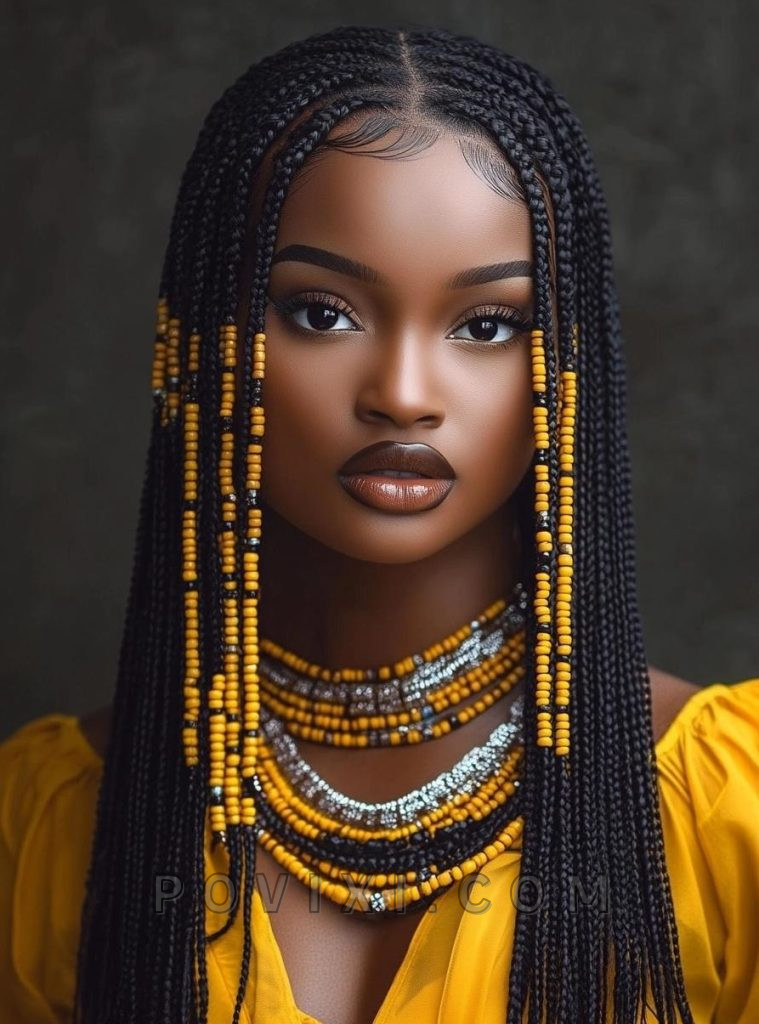 For a truly unique and traditional look, combining beaded cornrows with Fulani braids adds a layer of cultural significance and style. This look is ideal for those with square or diamond face shapes, as the cornrows create a structured and detailed appearance. It’s perfect for cultural events or when you want to make a bold fashion statement.