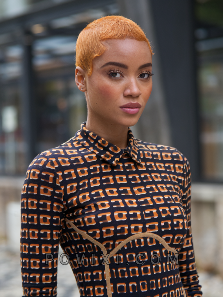 A ginger tapered cut is a minimalist yet eye-catching option for those who prefer short, low-maintenance hairstyles. The cut frames the face beautifully and highlights dark skin, making it an excellent choice for work, casual outings, or date nights. It suits all face shapes but works especially well with round and oval ones.