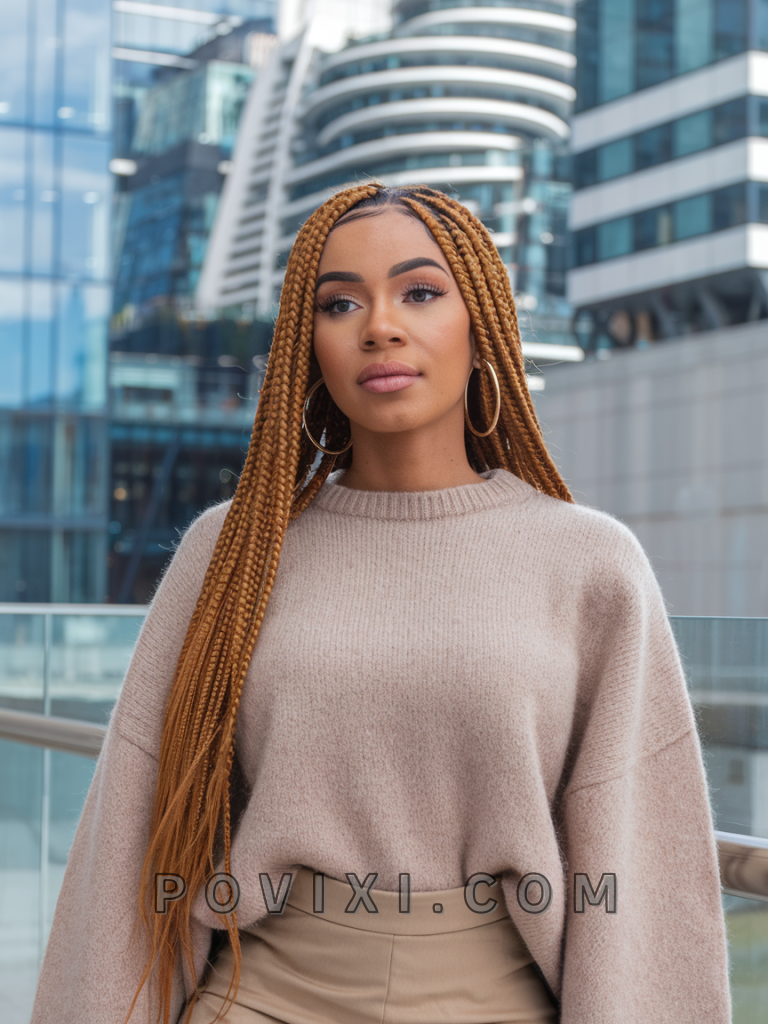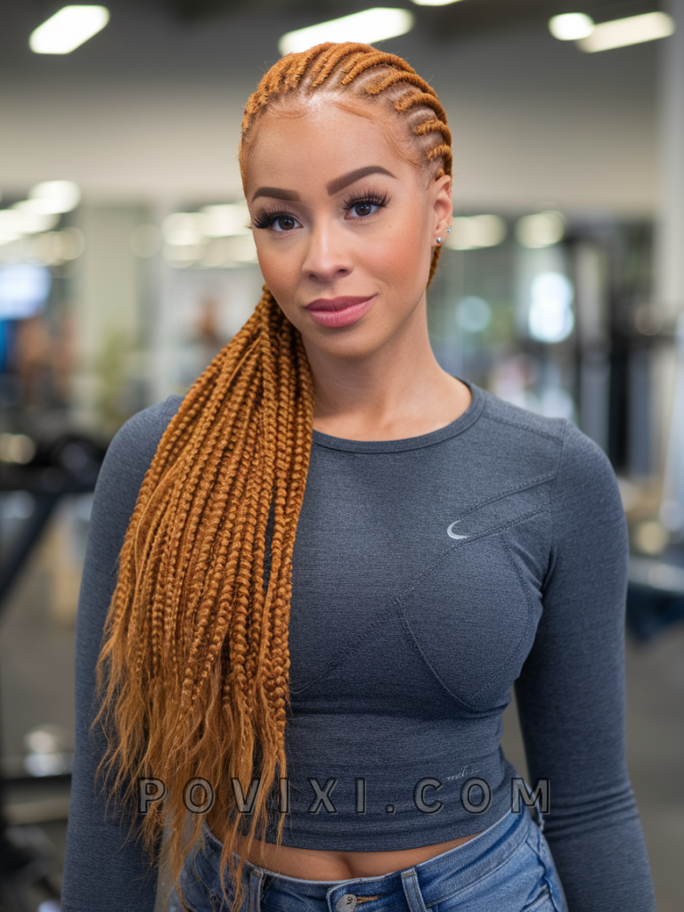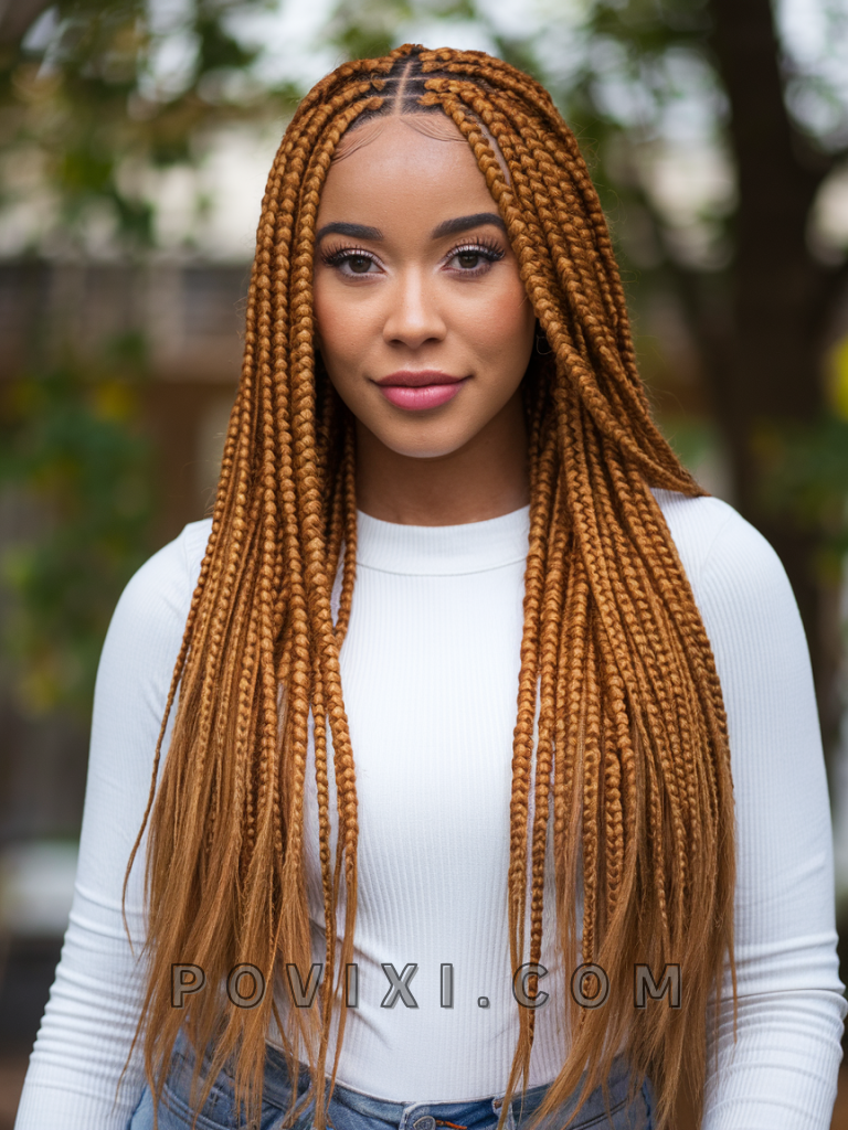 Ginger box braids are an effortless blend of protective styling and vibrant color. These braids allow you to experiment with bold tones without damaging your natural hair. Ideal for vacations, busy schedules, or even formal events, box braids suit heart-shaped and diamond-shaped faces. Pair them with neutral or earth-toned outfit ideas for a balanced look.
