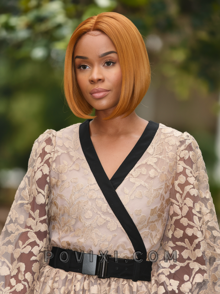 The short ginger bob is a sleek, natural short style that exudes sophistication and confidence. This chic haircut highlights the jawline, making it ideal for women with oval or square face shapes. The fiery hue contrasts beautifully against dark skin, making it a great choice for professional settings or date nights.