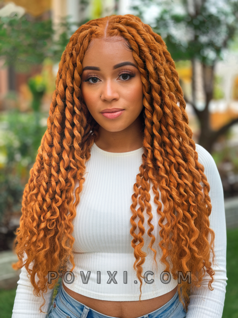Marley twists in a ginger hue are a protective style that balances practicality and style. The twists are lightweight and versatile, ideal for both casual and formal occasions. They suit heart-shaped and round faces, enhancing facial symmetry and providing a vibrant pop of color.