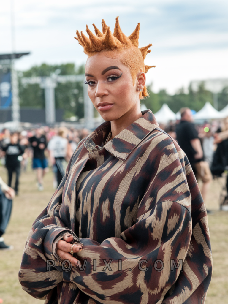 The ginger faux hawk is a daring yet versatile style that combines volume and edge. The style features tightly braided or shaved sides, with voluminous curls or locs styled in the center. Perfect for concerts, festivals, or a bold night out, this look suits square and oval face shapes.