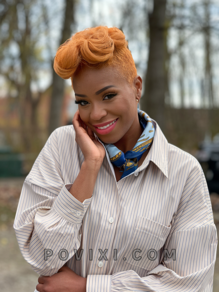 A short cut in ginger is the ultimate statement of confidence and style. The boldness of the color paired with the simplicity of the cut makes it a standout choice for black women. This style suits all face shapes and requires minimal effort, making it perfect for busy lifestyles or as a transitional style.