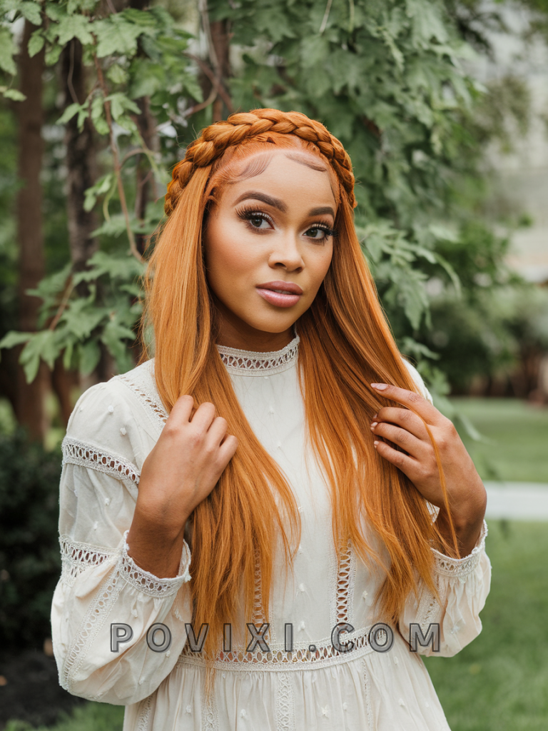 A long ginger wig is the ultimate way to experiment with this fiery trend without commitment. Perfect for women with natural 4c hair, wigs provide a protective barrier while allowing endless styling possibilities. This look suits diamond and oval face shapes and works well for parties, photoshoots, or elegant events.