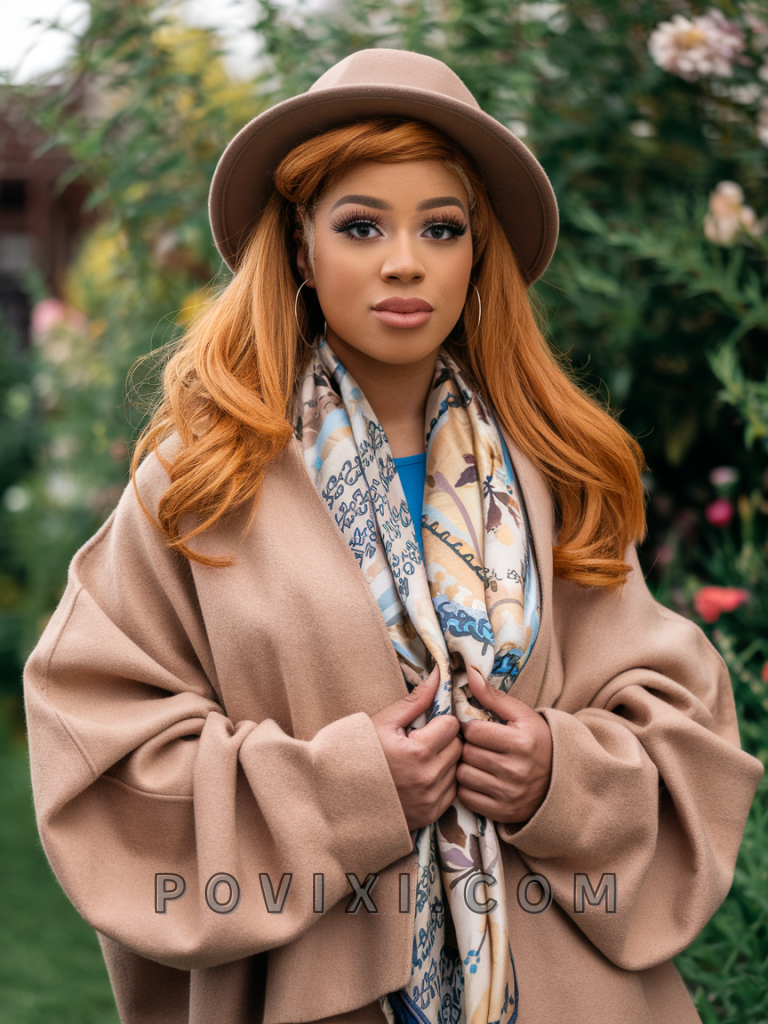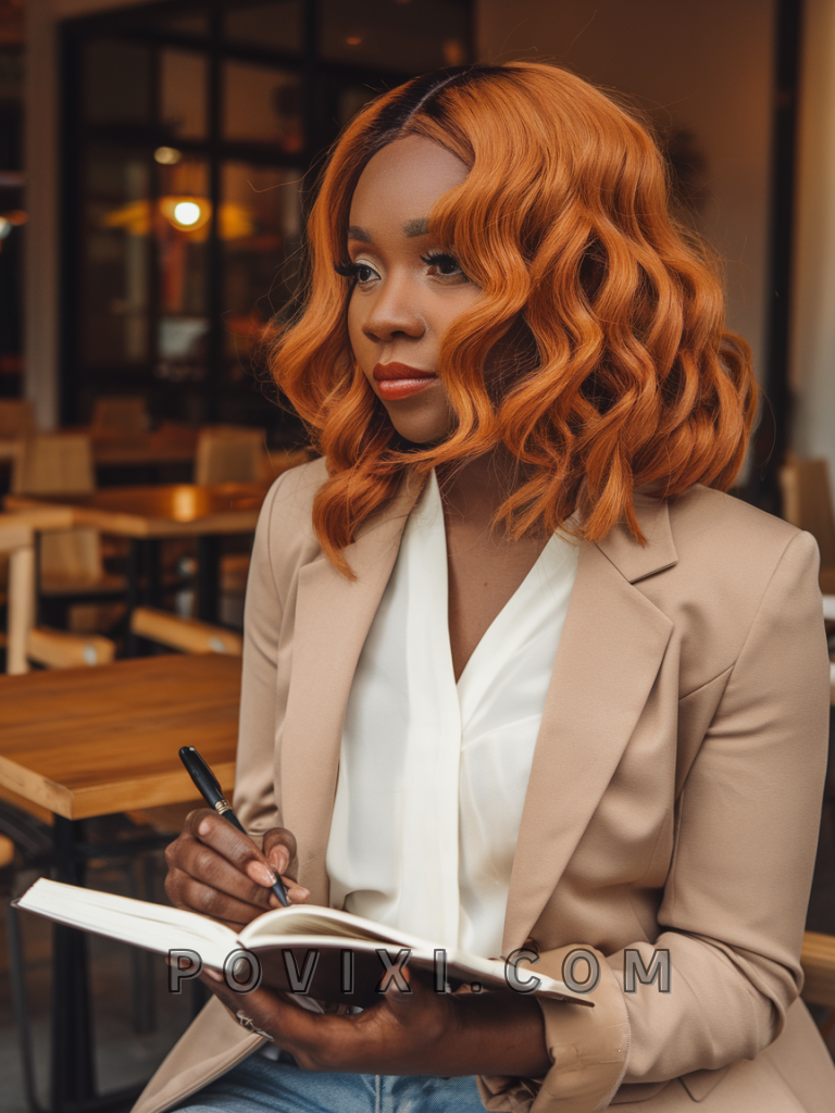 Soft ginger waves at shoulder length offer an effortless, romantic look. This style is perfect for brunch dates, work meetings, or special events. The warm tone complements dark skin and highlights brown and hazel eyes beautifully, making it a versatile choice for various occasions.
