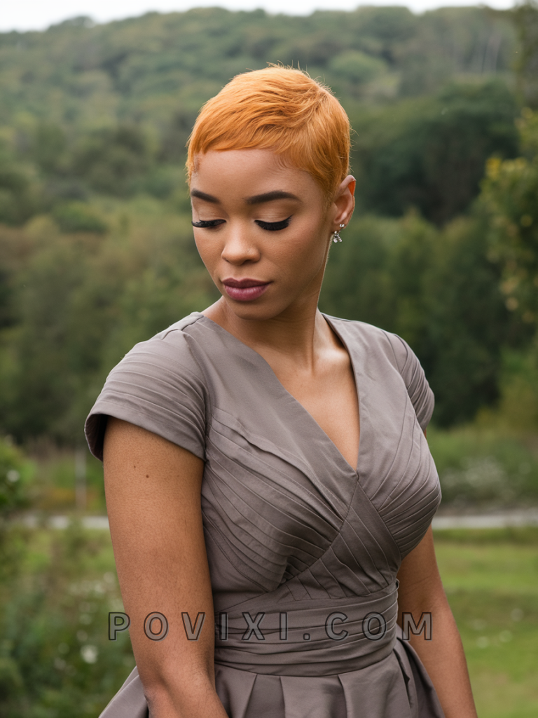 For those wanting a dramatic change, the ginger pixie cut is a daring choice. This short cut exudes confidence and modernity, making it perfect for professional women or those attending upscale events. It works well with oval and diamond face shapes, highlighting the eyes and cheekbones beautifully.