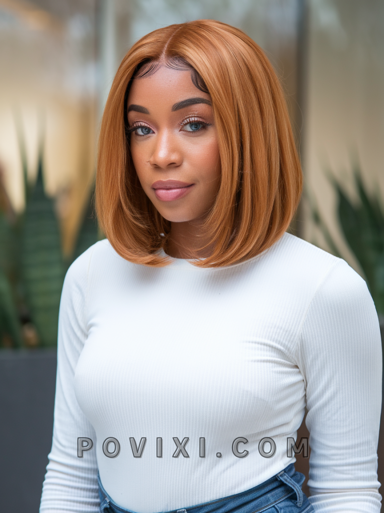A ginger bob with subtle highlights adds dimension and depth to a classic look. This style is perfect for professional settings or casual meet-ups, giving an elegant yet modern feel. It suits square and oval faces, complementing both dark and light eye colors.