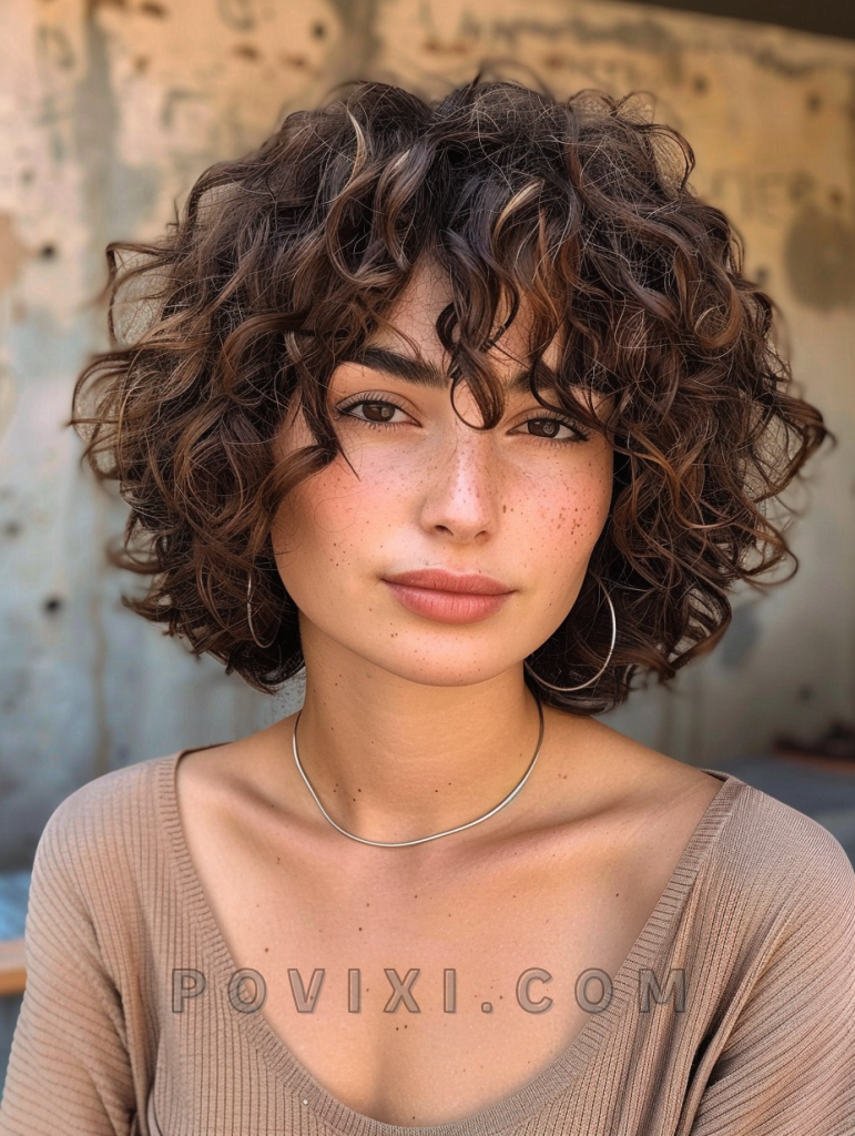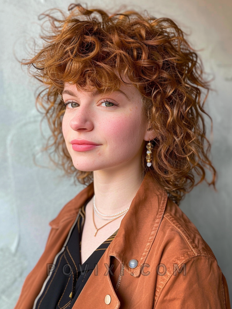 Adding a curly fringe to any haircut introduces a playful, youthful vibe. This style is particularly effective for those with medium-length hair and suits a variety of face shapes, especially those with more pronounced foreheads. It’s a versatile look that can swing from boho chic to sleek professionalism with just a few styling tweaks.