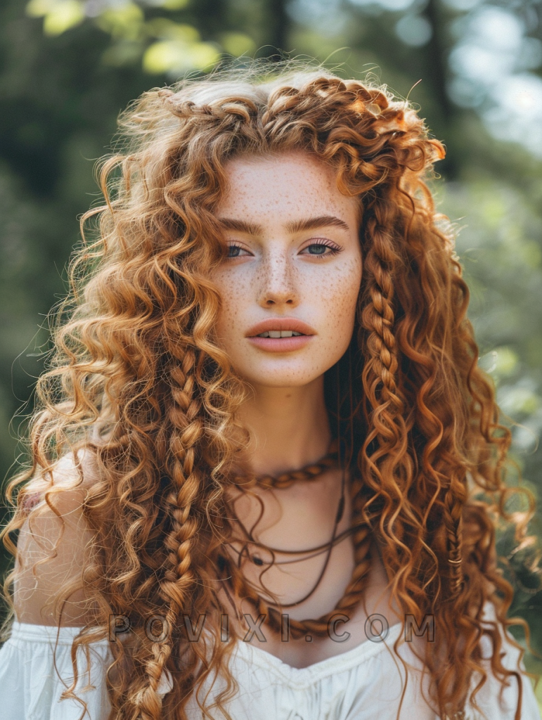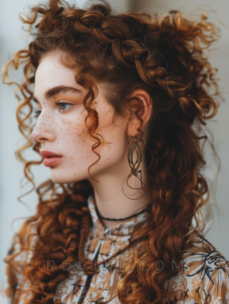 Boho Braids incorporate small, delicate braids into loose curls, creating a whimsically textured style that’s perfect for festivals or everyday whimsy. This style works beautifully on long, natural curls and adds an element of interest with its intricate patterns.