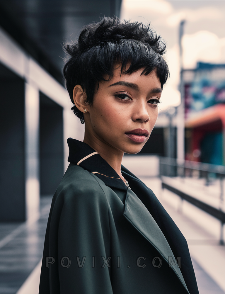 The Afro Pixie is a bold, empowering cut that works best with very tight, natural curls. It’s a minimalistic style that highlights the natural beauty of Afro-textured hair. This cut is particularly flattering for round and square face shapes, offering a balanced, modern look.