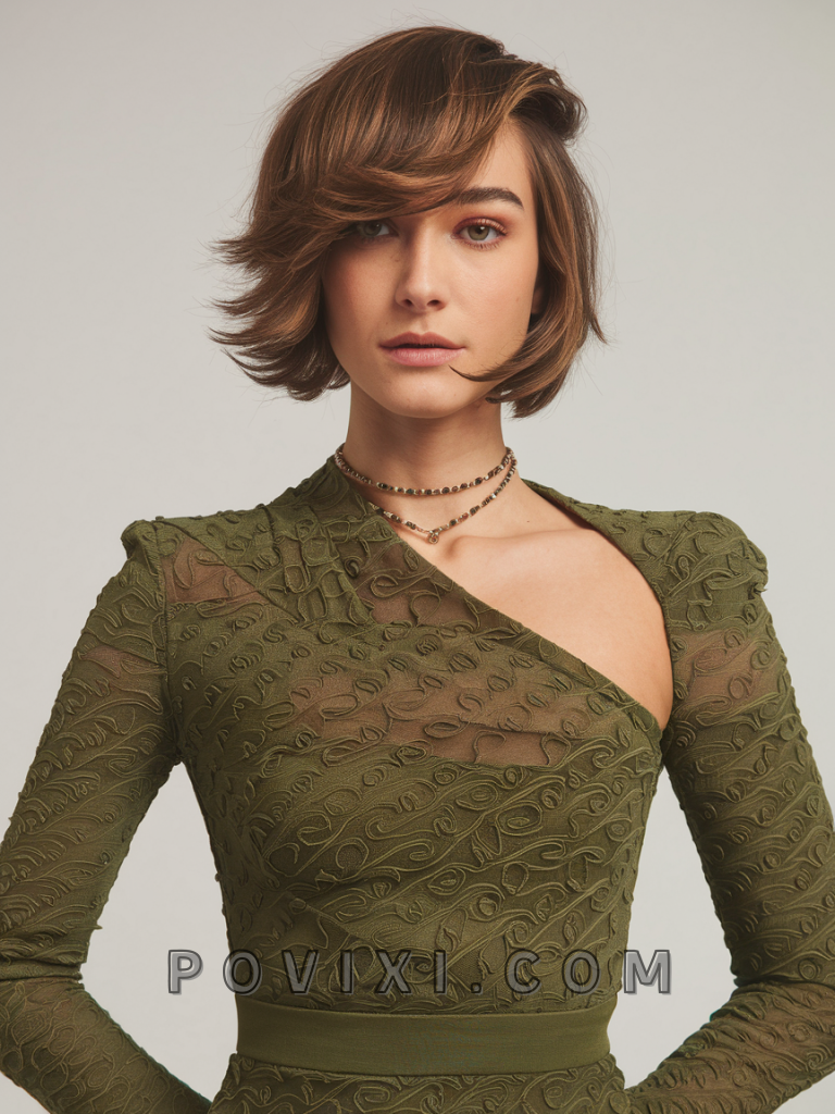 The curtain bangs bob is soft and feminine, ideal for Valentine’s Day or a bride looking for a romantic touch. This style works best on oval and round face shapes and complements light to medium eye colors. Pair this look with a traditional outfit or a chic party dress for a stunning appearance.