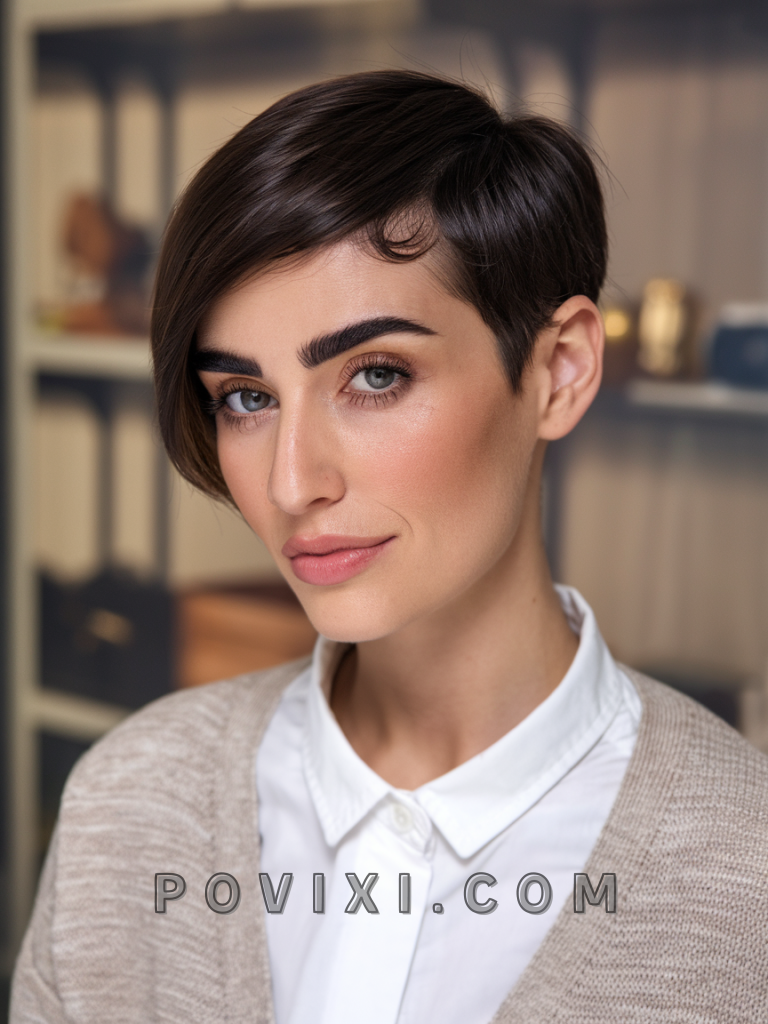 The classic pixie cut is timeless and chic, offering a clean, edgy look. It works perfectly for formal occasions like a prom or wedding, while still being practical for everyday wear, such as at work or school. The cut flatters oval and heart-shaped faces and can emphasize light eye colors, such as green or hazel. Pairing this cut with curtain bangs adds softness and highlights your cheekbones, making it a cute option for both casual and party settings.