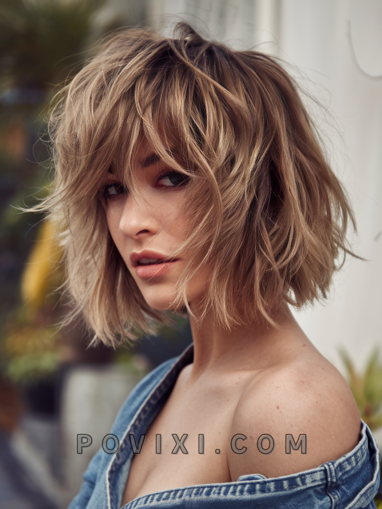 The tousled bob with layers is casual yet chic, making it ideal for a party, beach day, or even a work meeting. This style is flattering for round and square face shapes, offering a playful, youthful vibe. The layers add movement and volume, making it a great choice for thin hair.