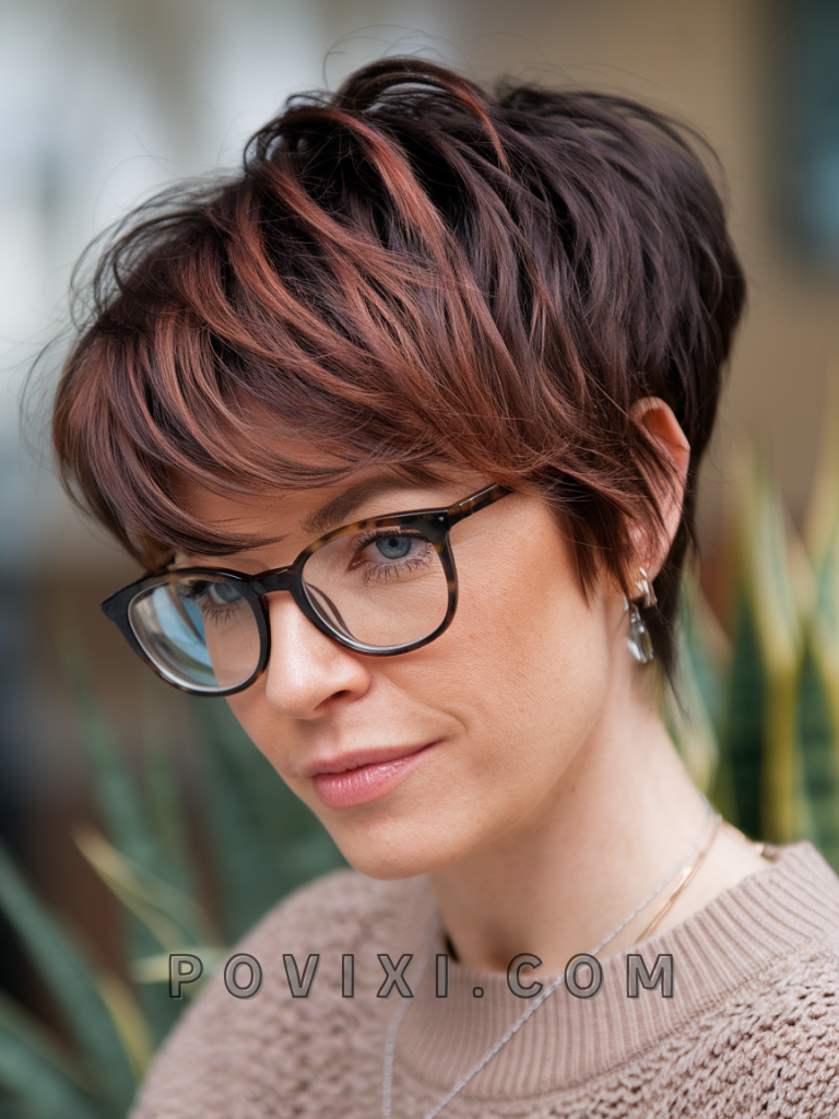 The layered pixie with waves adds dimension and movement, making it a fun and cute choice for casual outings, a beach day, or a Christmas gathering. This hairstyle suits round and square face shapes, softening angular features while adding a playful touch. The wavy texture highlights natural hair patterns, making it a great option for those with natural or curly hair.