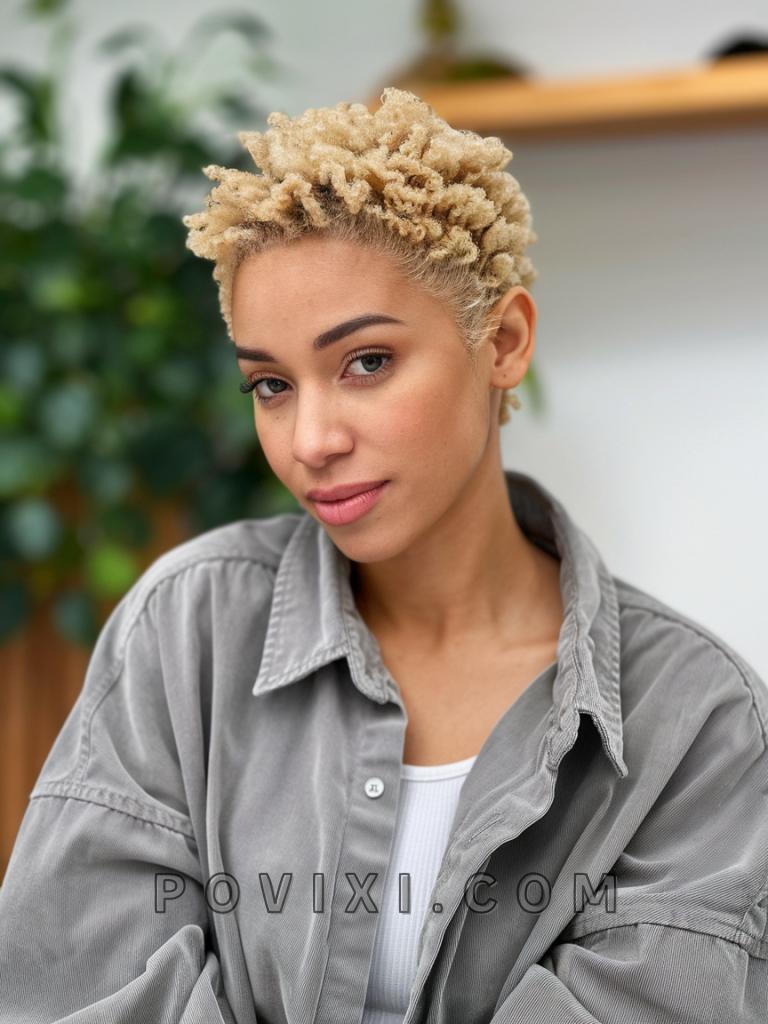 The voluminous pixie with bangs adds height and drama, making it perfect for prom, work, or a chic party look. The bangs frame oval and round face shapes beautifully, drawing attention to the eyes. It’s also great for adding volume to thin hair.