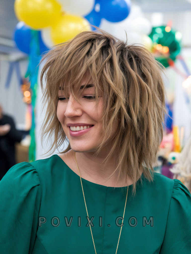 For a carefree vibe, the messy shag adds layers and dimension, giving a youthful, baddie aesthetic. This hairstyle is great for casual party looks or an edgy Halloween costume. The uneven layers flatter oval and diamond-shaped faces, and it works wonderfully for those with naturally curly hair, adding volume and texture.