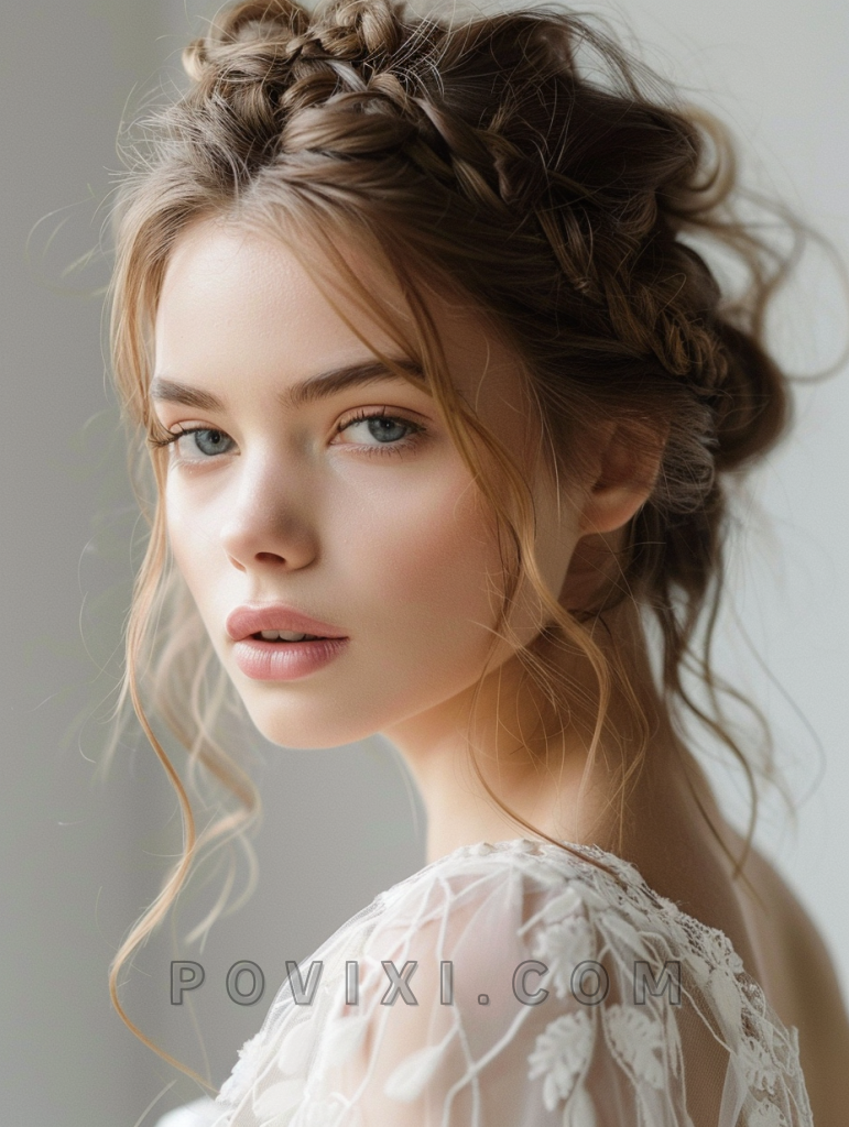 The halo braid is a beautiful and elegant hairstyle that wraps around your head like a crown. This style is perfect for formal events, weddings, or any occasion where you want to feel like royalty. It suits oval and heart-shaped faces and enhances lighter eye colors such as blue and green.