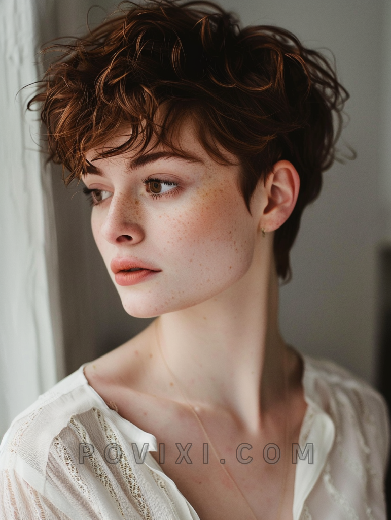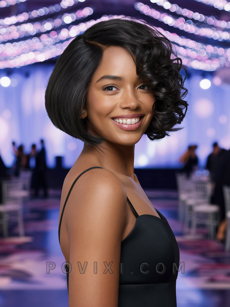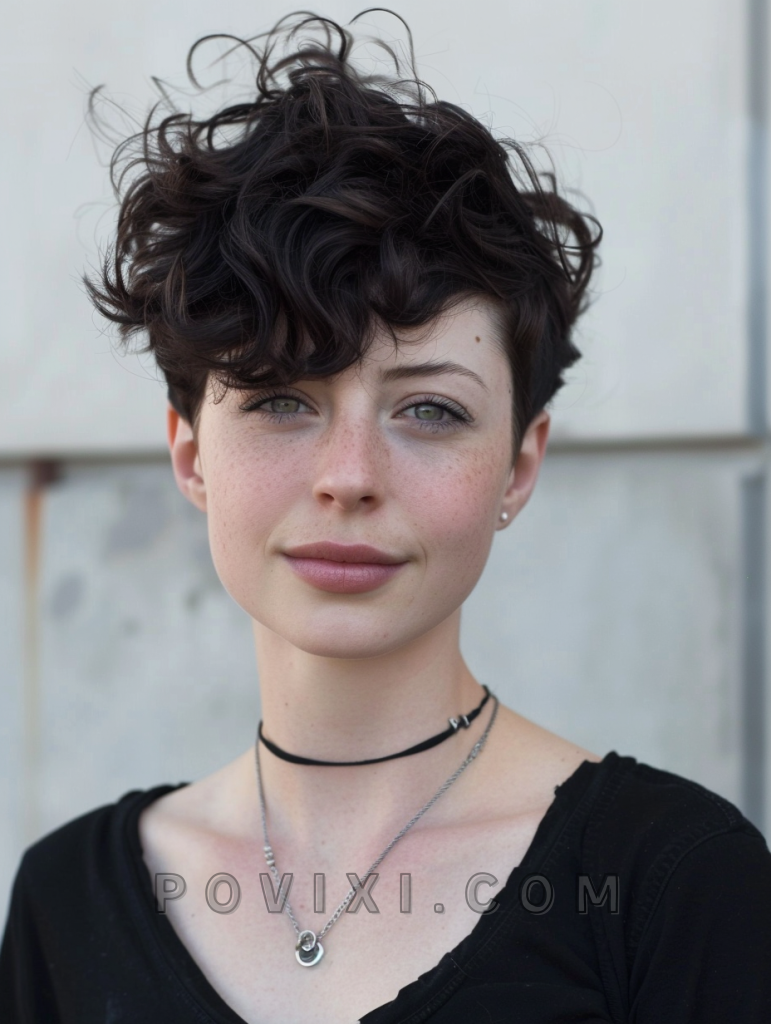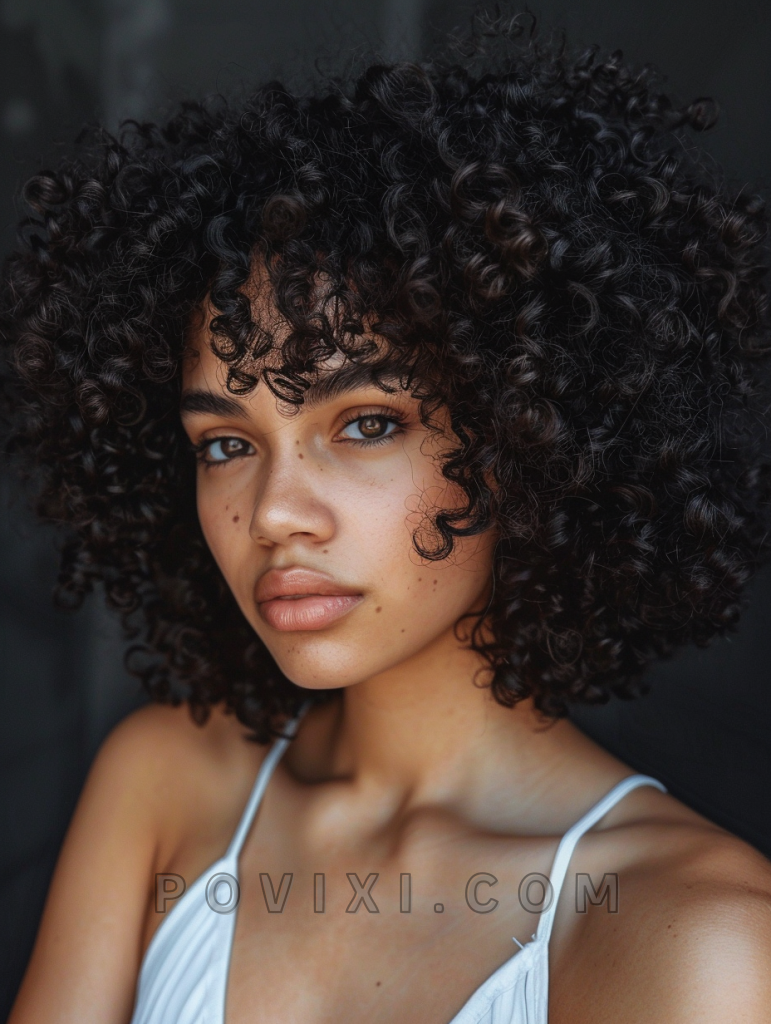 The short curly bob is a modern and chic hairstyle that emphasizes the natural curl pattern of your hair. This style is ideal for everyday wear and special events, giving you a fresh and youthful look. It works well with oval and round face shapes and brings out the brightness in brown and blue eyes.