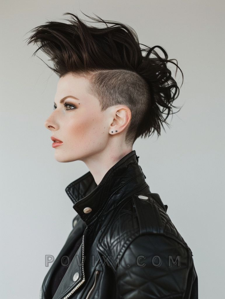 The faux hawk is a stylish and daring hairstyle that mimics the look of a mohawk without the commitment of shaving the sides. This style involves slicking the sides of your hair and creating volume in the center. It’s ideal for parties or nights out, suiting all face shapes and enhancing darker eye colors.
